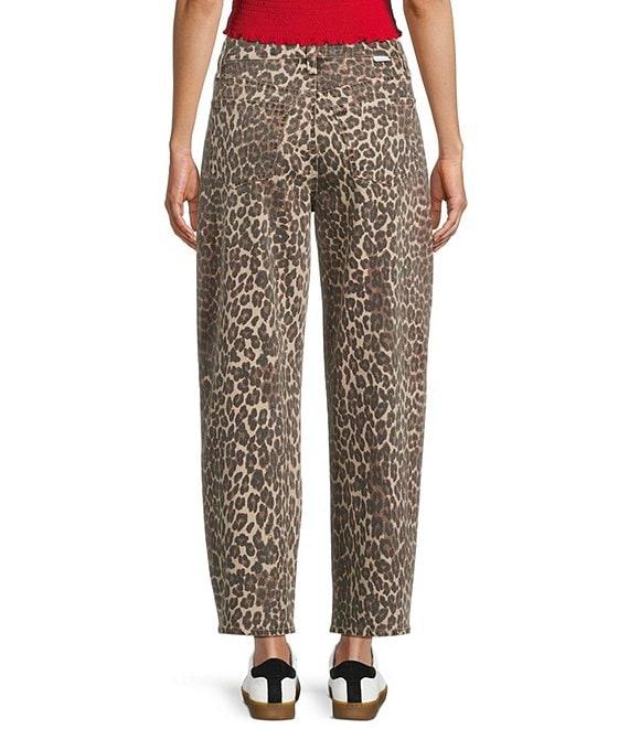 Daze Barrell Leg Mid Rise Leopard Print Denim Jeans