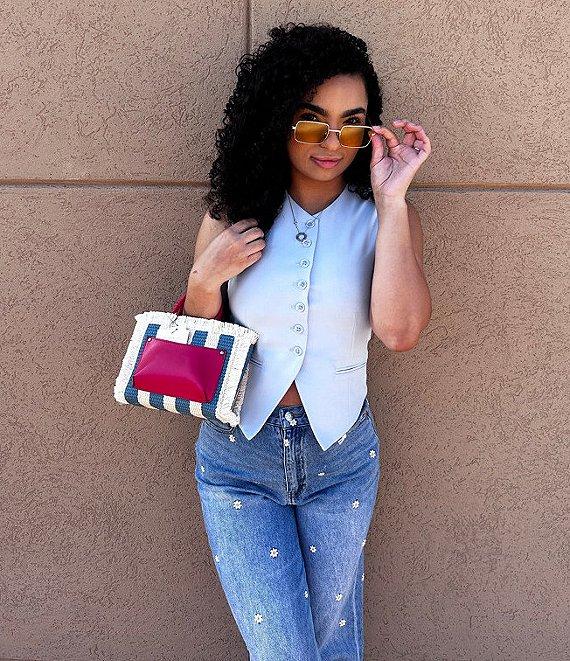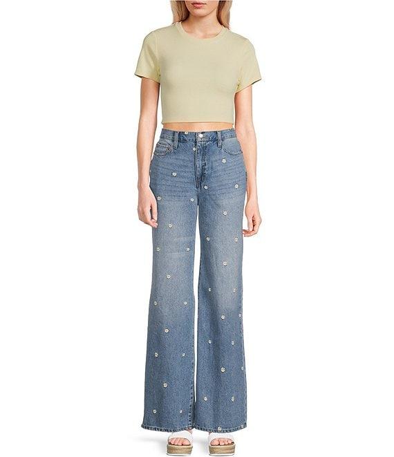 Daze Far Out High Rise Wide Leg Daisy Print Jeans