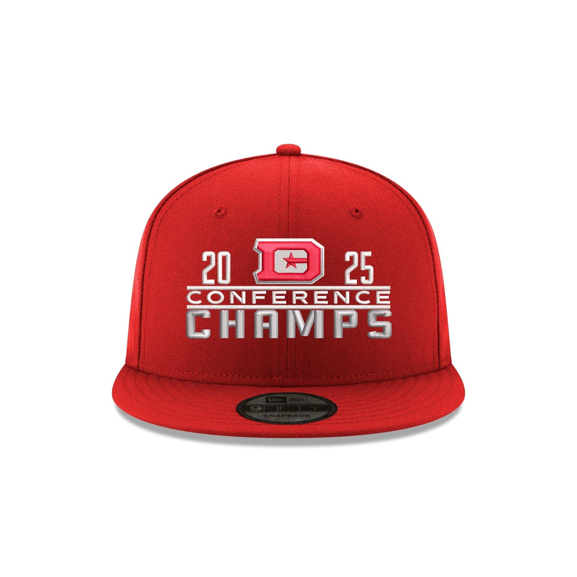 The DC Defenders Conference Champions 9FIFTY Snapback features an embroidered Defenders 2025 Conference Champs wordmark at the front panels with UFL Conference Championships at the right-wear side and a snapback closure at the rear.