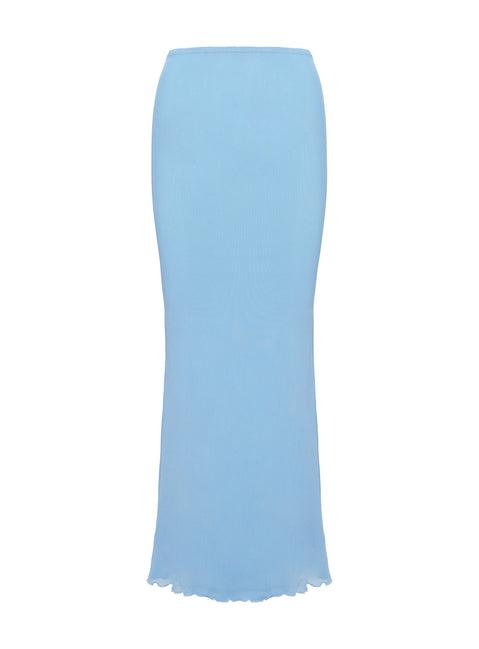 Sheer Maxi skirt Elasticated waistband, lettuce trim hem, pocketless, mid-rise fit Partial-stretch material, fully lined Main: 95% polyester 5% elastane, Lining: 95% polyester 5% elastane Cold gentle machine wash Length of size US 2 / AU 6 waist to hem: 98cm / 38.5in