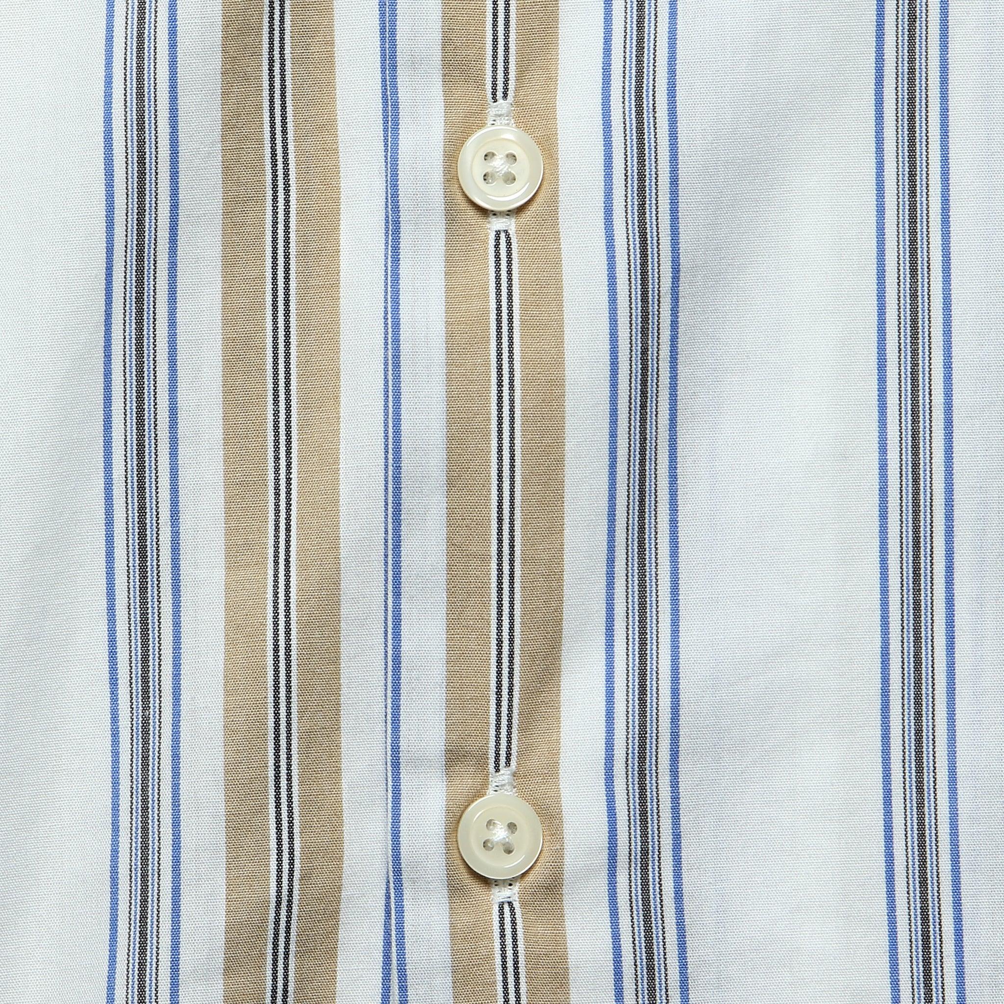 The Dean Stripe Road Shirt from Universal Works is made with lightweight, breezy cotton that’s woven with a classic vertical striped pattern and accented with contrast trim at the cuffs and hem for a vintage-inspired finish. It’s tailored with a traditional fit that runs a touch slim through the shoulder and is detailed with a single, pattern-match chest pocket, mother-of-pearl buttons, and a camp collar for a laid-back 50s look and feel. Lightweight cotton Woven vertical stripe Single chest pocket Straight hem Camp collar Mother-of-pearl buttons Traditional fit that runs true to size We recommend taking your normal size Materials: 100% cotton The following measurements are for size Medium: Chest: 42” | Shoulder: 16” | Sleeve: 18” | Length: 28”