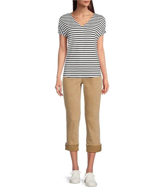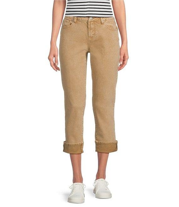 From Dear John, this jean features: Twill fabrication Slim-straight silhouette Mid-rise waistline Cropped length 5 pocket styling Cuffed hemline Front button/zipper closure Approx. 28" inseam (uncuffed); 9.5" front rise; 14" back rise; 13.5" leg opening Cotton/polyester/spandex Wash before wearing Machine wash cold with similar colors inside out; tumble dry low; warm iron when needed Imported.