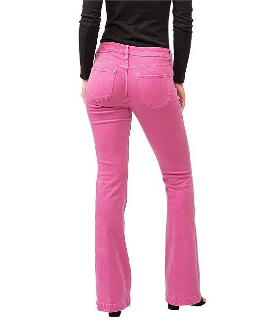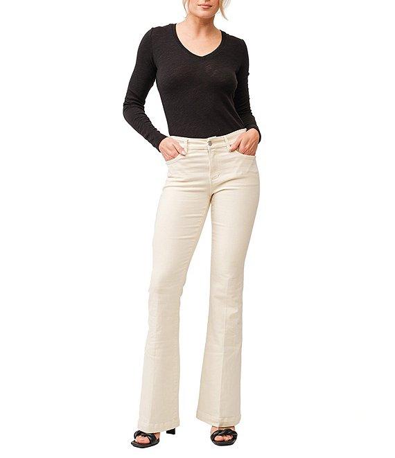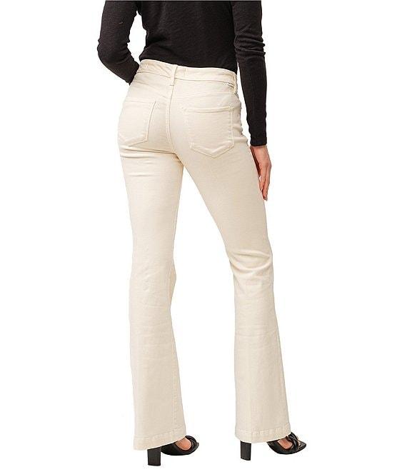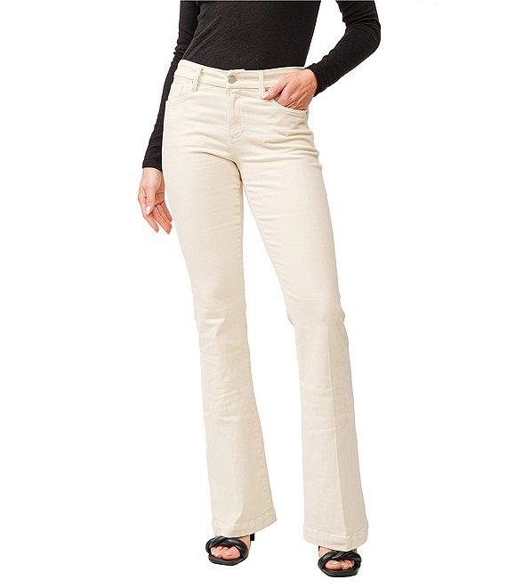 From Dear John, this pant features: Twill fabrication Flare leg silhouette Mid-rise waistline Full length Straight hemline Front button/zipper closure Approx. 34" inseam; 9.5" front rise; 14.5" back rise Cotton/polyester/spandex Machine wash cold Imported.