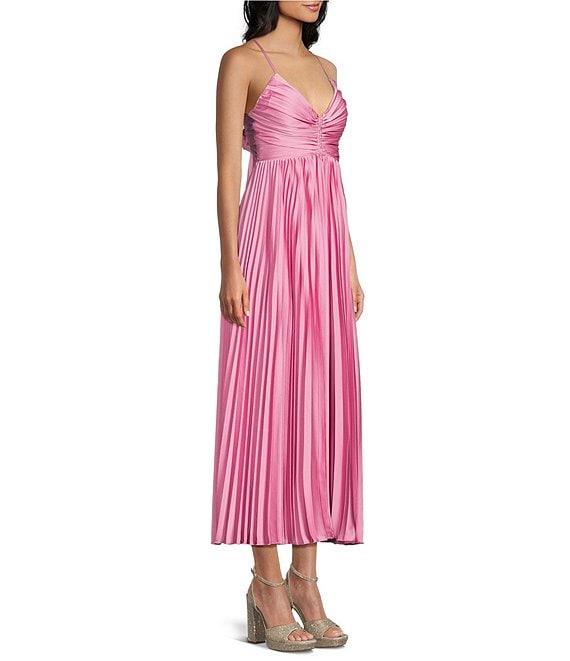 Dear Moon Pleated V-Neck Tie Back Midi Dress