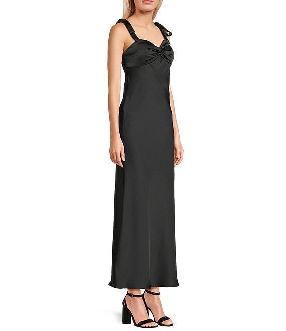 Dear Moon Satin Sweetheart Neck Twist Front Tie Shoulder Dress