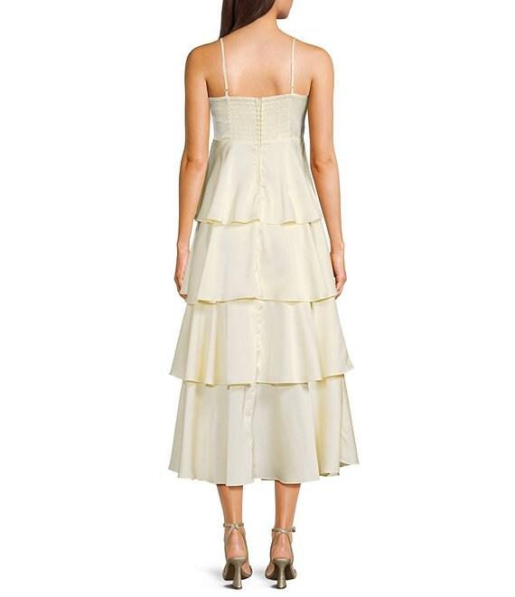 Dear Moon Satin Twist Front Ruffle Tiered Midi Dress