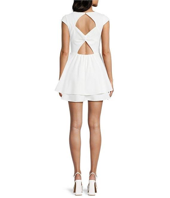 Dear Moon Scuba Crepe Sweetheart Neck Short Sleeve Twist Back Double Tier Dress