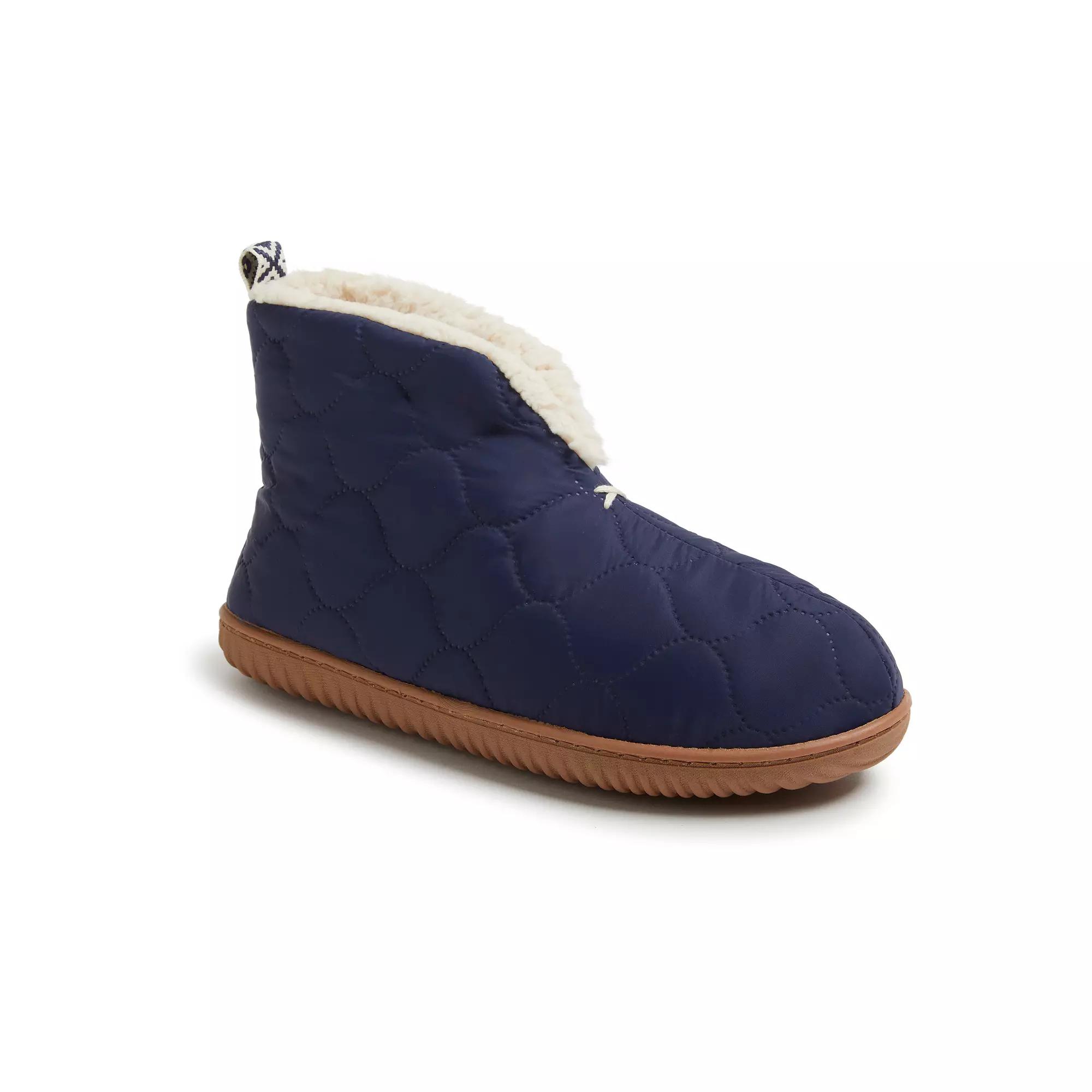 Revamped 80s style and new-age comfort make the Dearfoams Warmup slipper a versatile pick. The quilted bootie slipper features a signature no-sweat DF Adapt technology that reduces sweat and optimizes foot temperature. Super-plush lining keeps you cozy all day, while the machine-washable facility ensures effortless maintenance and enduring freshness.