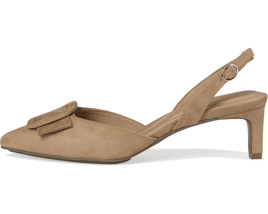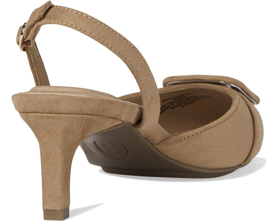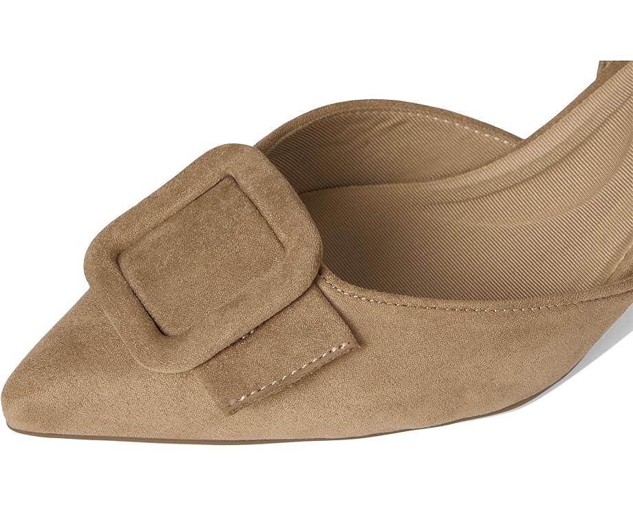 The Anne Klein® Iva is a manageable yet stylish kitten heel that offers the perfect balance of grace and stability, allowing you to stride confidently and comfortably. The pointed toe pair has faux leather upper with a large buckle adornment and adjustable buckle closure at the slingback strap.