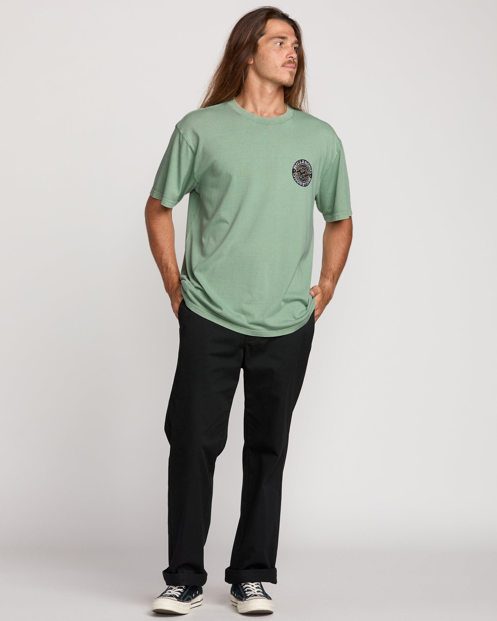 Our mid-weight, 100% ring spun cotton jersey men's tee delivers a classic, comfortable fit with relaxed shoulders and wider neckline. The vintage-inspired wave-washed treatment and soft screen-printed graphics lend a perfectly broken-in look and feel. Features 100% Ring spun cotton - Mid Weight 180G 24/1 Jersey Our regular tees are a true classic fit with relaxed shoulders and a wider neck rib Front and back soft hand screen print Heavily Wave Washed for a true vintage look and a buttery soft hand feel Side seam flag label and interior heat transfer neck label