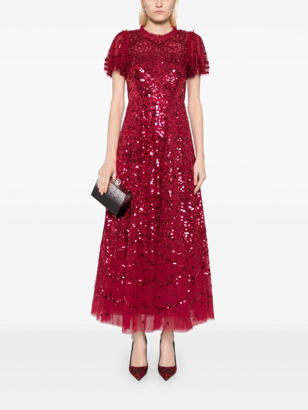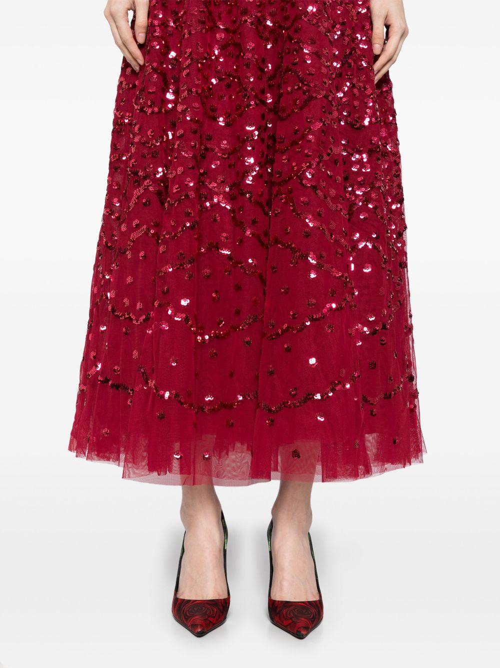 Needle & Thread deco dot ankle gown | Red | red | concealed rear zip fastening | tulle overlay | Recycled Polyester/Recycled Polyester | Evening Dresses | Dresses | Clothing | Women