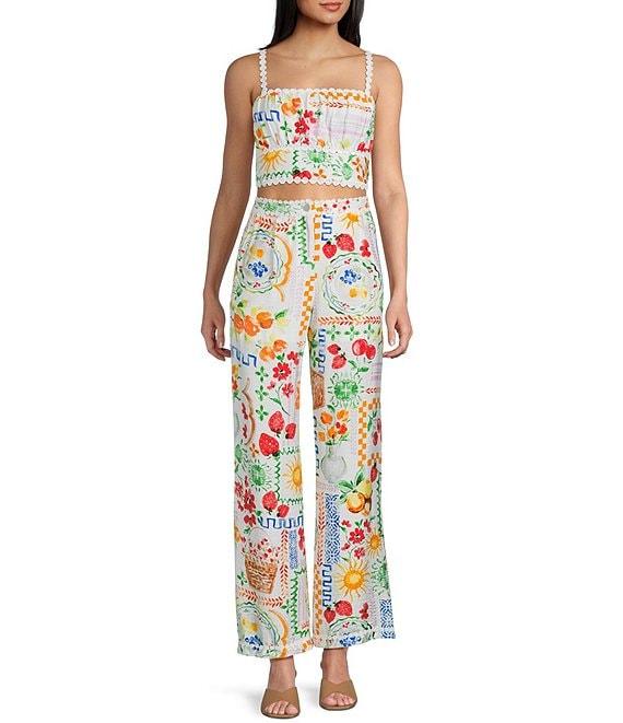 Dee Elly Square Multi Print Coordinating Crop Top