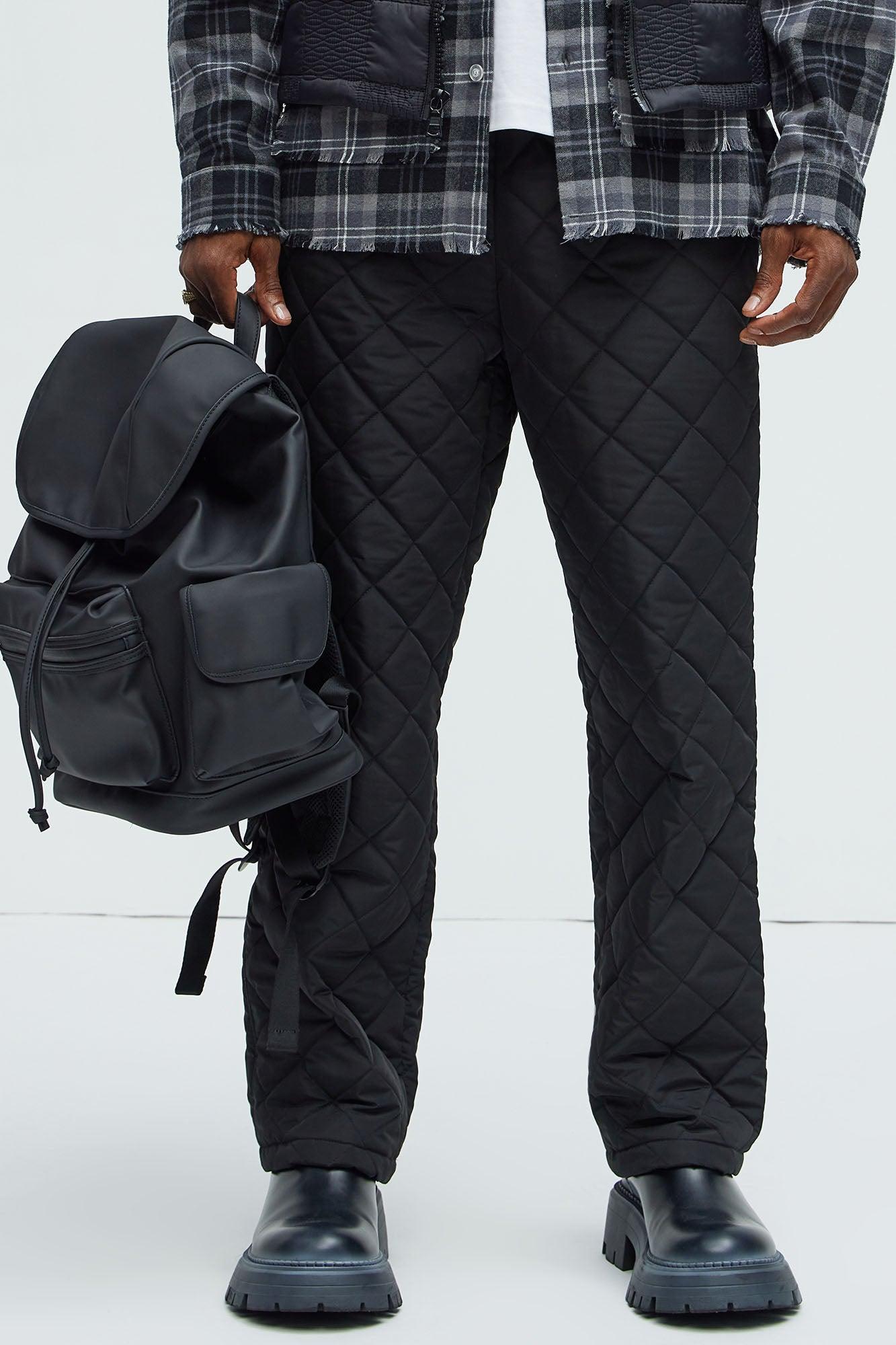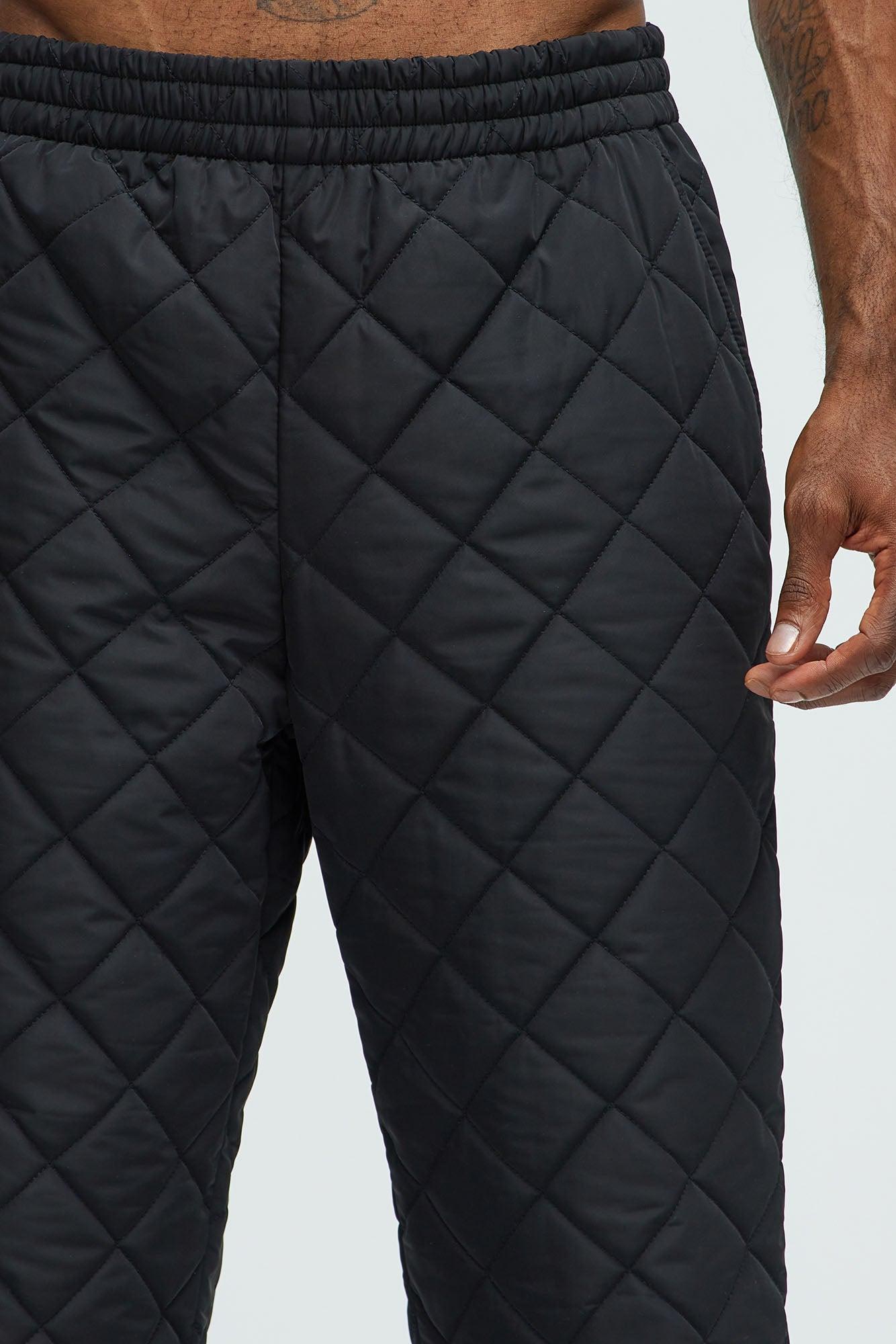 Available In Black. Elastic Waist Drawstring 100% Polyester Fill: 100% polyester Lining: 100% Polyester Disclaimer: Due To The Specialized Distressing & Printing Process, Each Garment Is Unique. Side Pockets Quilted Detail Imported