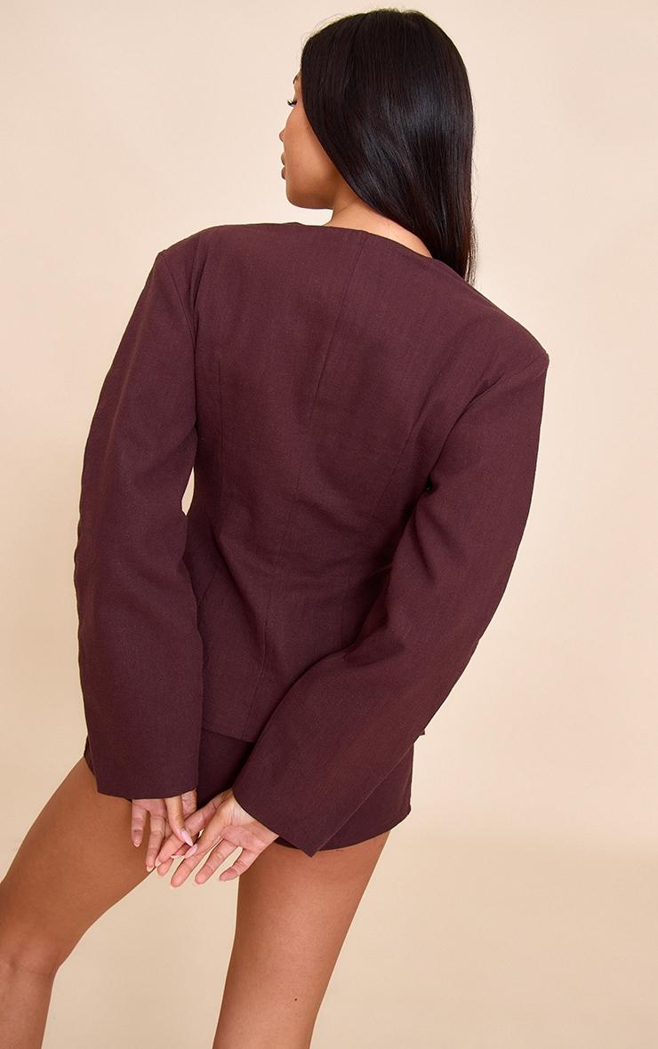For a unique twist on a classic, you need this deep chocolate premium linen tailored cocoon sleeve cinched blazer. Crafted from deep brown material, this blazer has a cinched waist fit and fashion-forward cocoon sleeves. Pair it with the matching shorts, kitten heels and sophisticated jewelry for a look like no other.Length approx 48.5cm/19inch (Based on sample size US 4)Model wears size UK 8/ EU 36/ AUS 8/ US 4Model Height - 5ft 9inchp]:!mb-4inch>Brand: PrettyLittleThingCategory: Co-ordsProduct type: BlazerColor: Deep ChocolateDesign: PlainNeckline: CrewSleeves: LongOccasion: Day