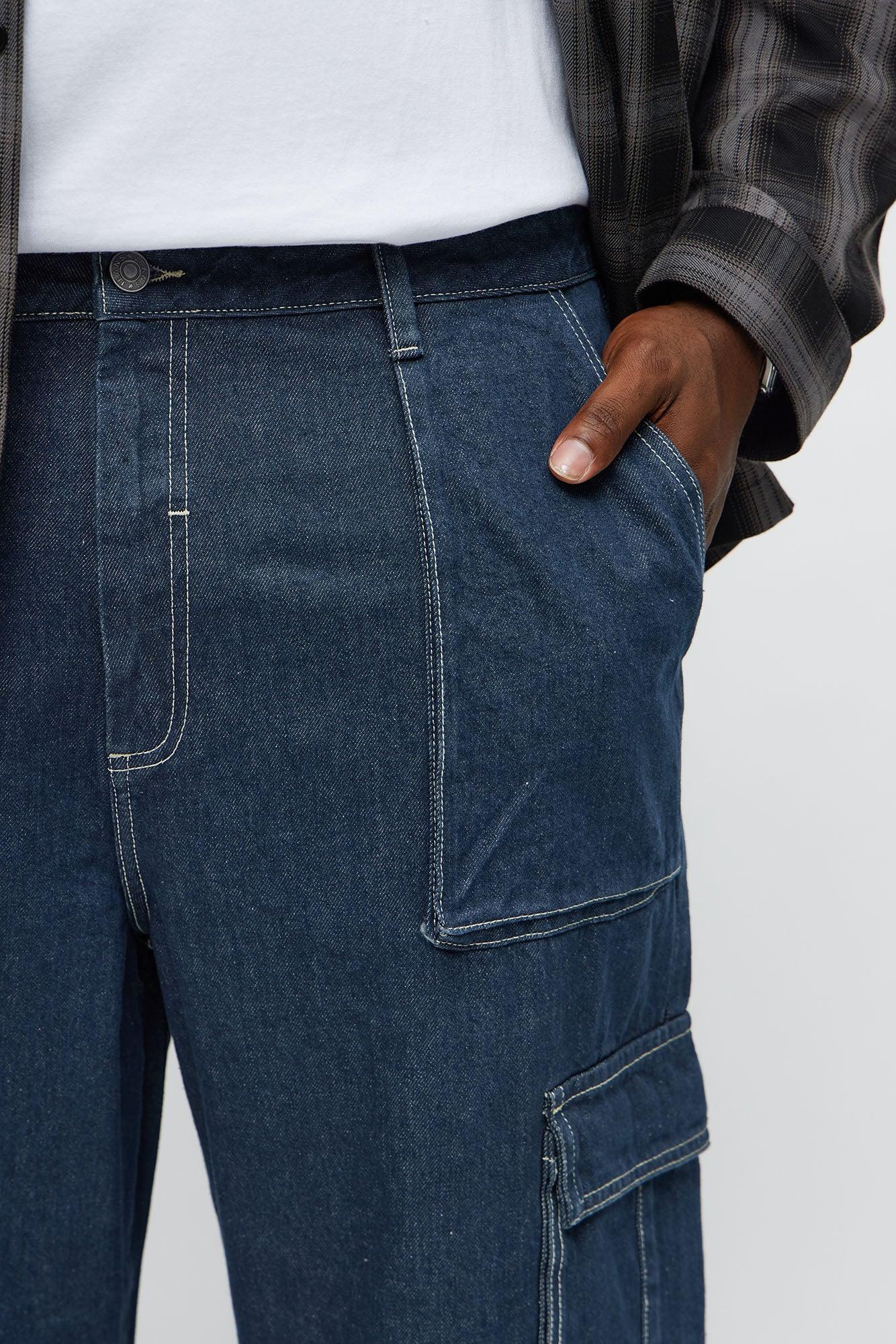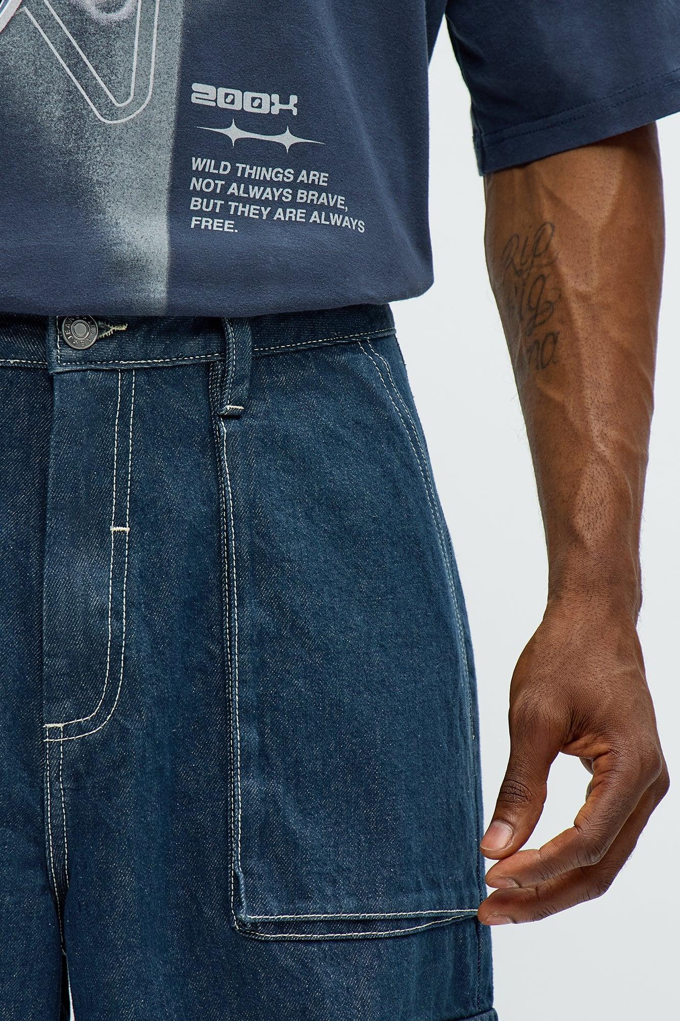 Deep End Contrast Stitch Baggy Jeans - Dark Wash Male