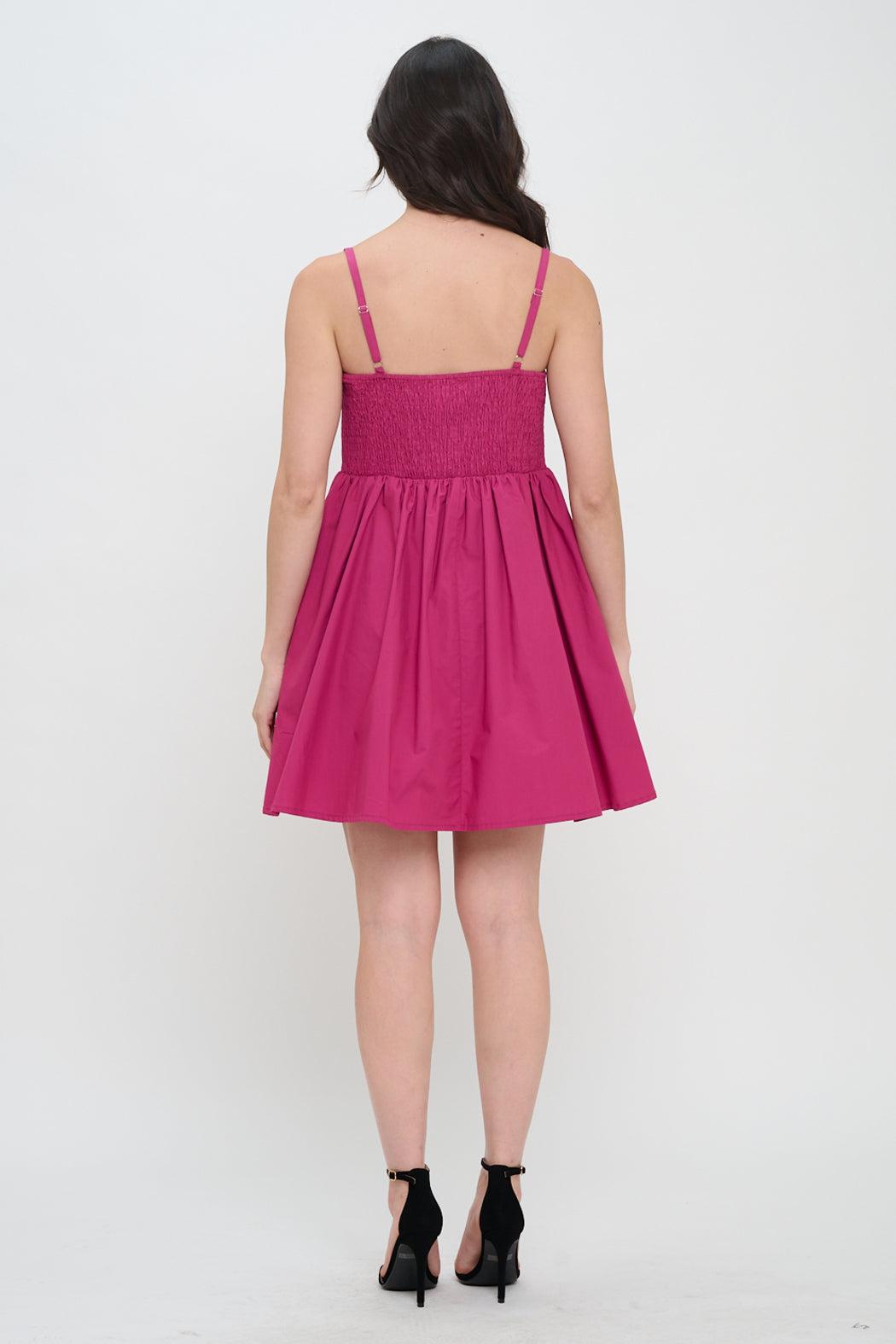 Delightfully feminine and effortlessly charming, the Deep Pink Poplin Bow Dress is a celebration of playful sophistication. Crafted in crisp cotton poplin, this flirty mini features a fitted bodice accented with double bow details for a touch of whimsy. Adjustable spaghetti straps and a softly gathered skirt offer ease and movement. Perfect for sunlit garden parties, weekend getaways, or your next al fresco dinner date.