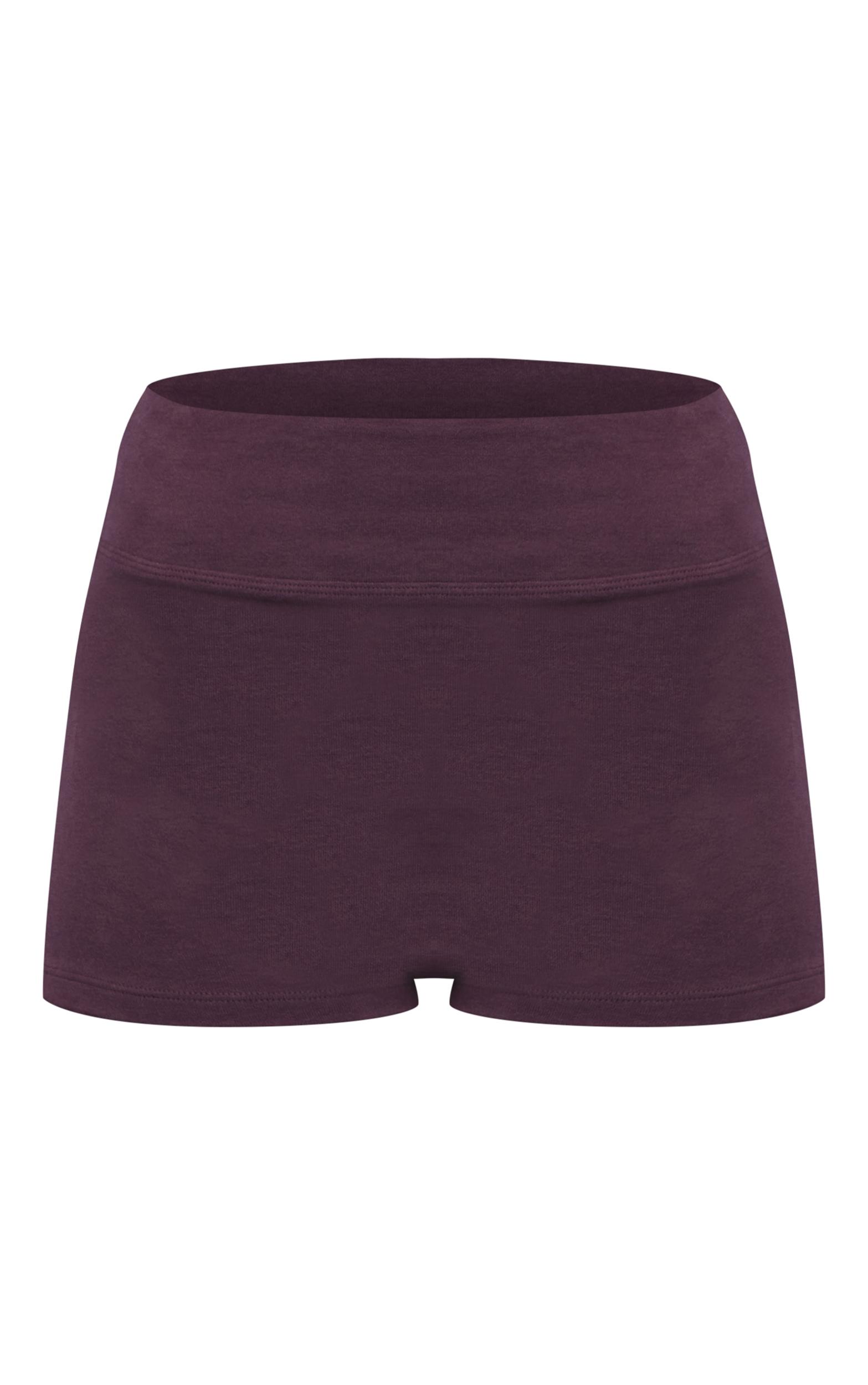 Keep it casual in the deep plum soft cotton hot Pant. Made from a deep plum soft cotton fabric, they feature a fitted silhouette, elasticated waistband, and a flattering short length. Perfect for lounging or layering into your off-duty looks, these shorts balance comfort with style. Pair with sneakers and a matching hue top for a playful chic twist. Length approx 33cm/13inch (Based on sample size S)Model wears size SModel Height - 5ft 10inchp]:!mb-4inch>Brand: PrettyLittleThingCategory: AthleisureProduct type: Gym ShortsColor: Dark PlumMaterial: Cotton JerseyOccasion: Day