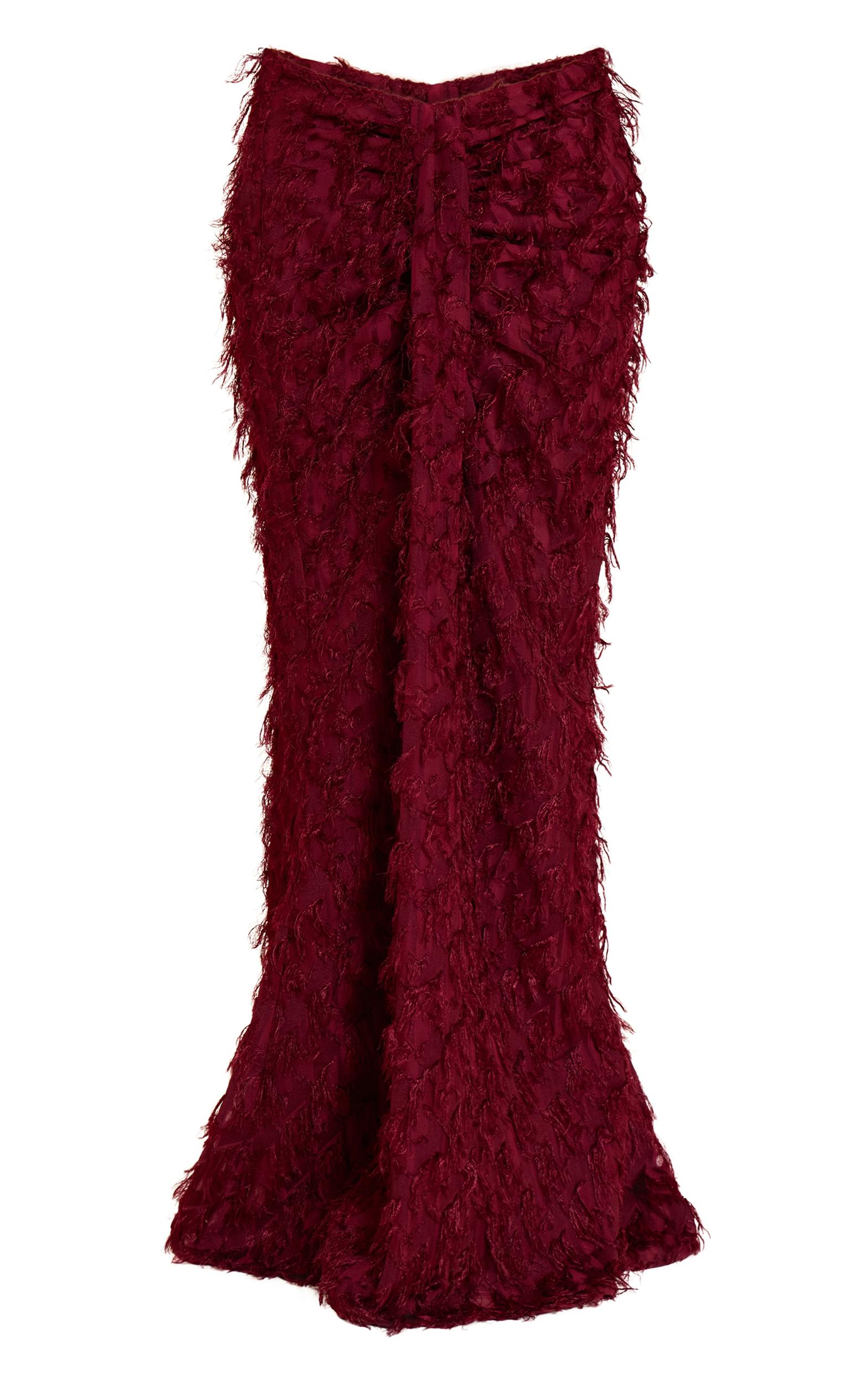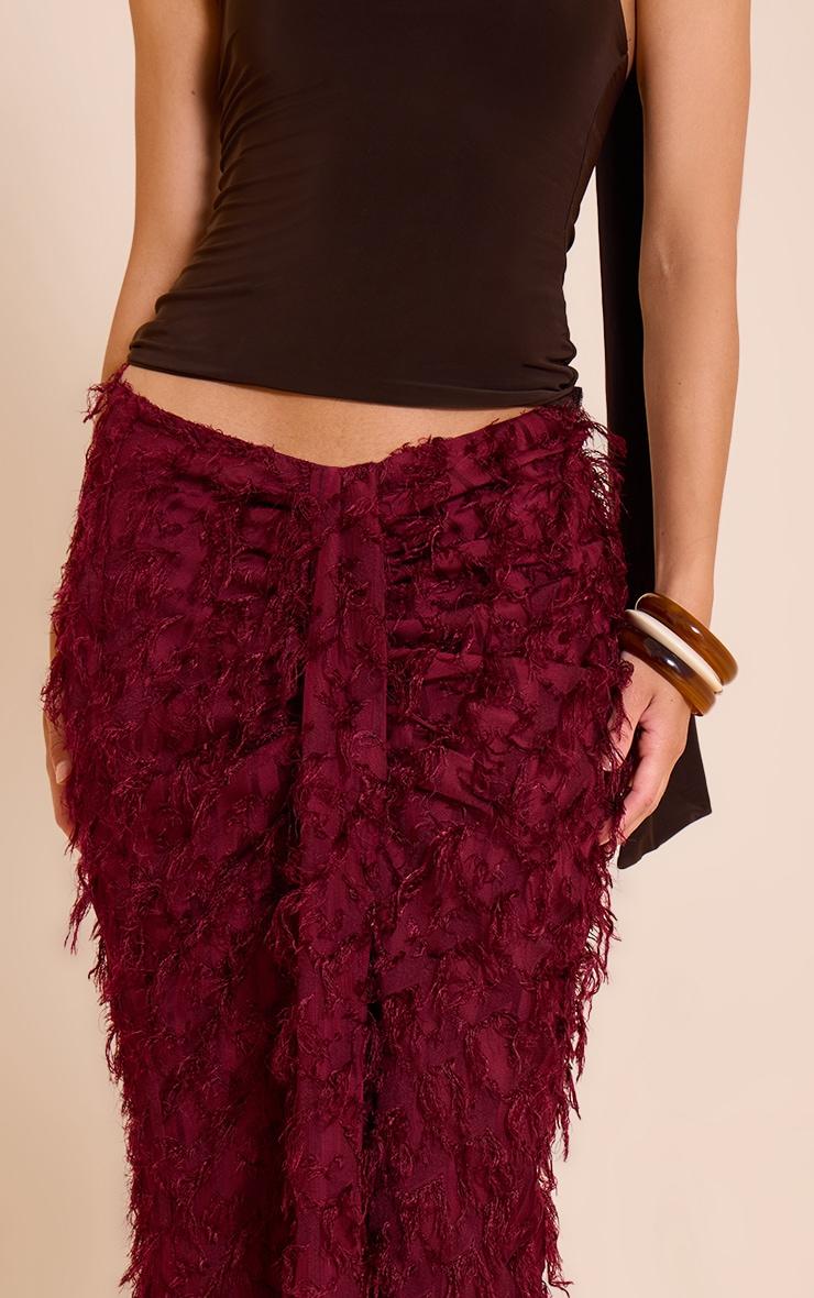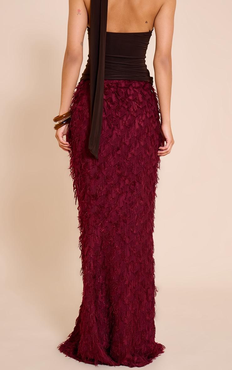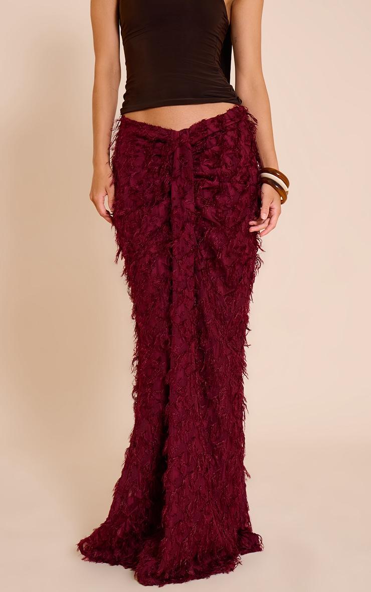 Add edge to your wardrobe with the deep red distressed woven dip waist maxi skirt. Crafted with a low dip waist and distressed detailing, this maxi brings a grungy twist to your look. Pair with a fitted top or oversized tee for a laid-back, cool-girl outfit.Length approx 114.5cm/45inch (Based on sample size US 4)Model wears size UK 8/ EU 36/ AUS 8/ US 4Model Height - 5ft 8inchp]:!mb-4inch>Brand: PrettyLittleThingCategory: BottomsProduct type: Maxi SkirtColor: Deep RedMaterial: Jersey JacquardOccasion: Evening