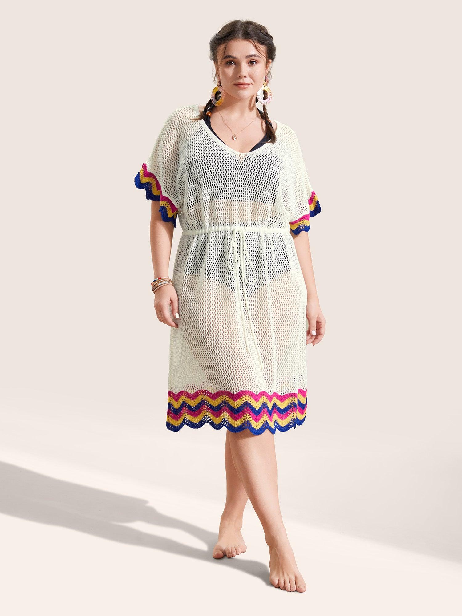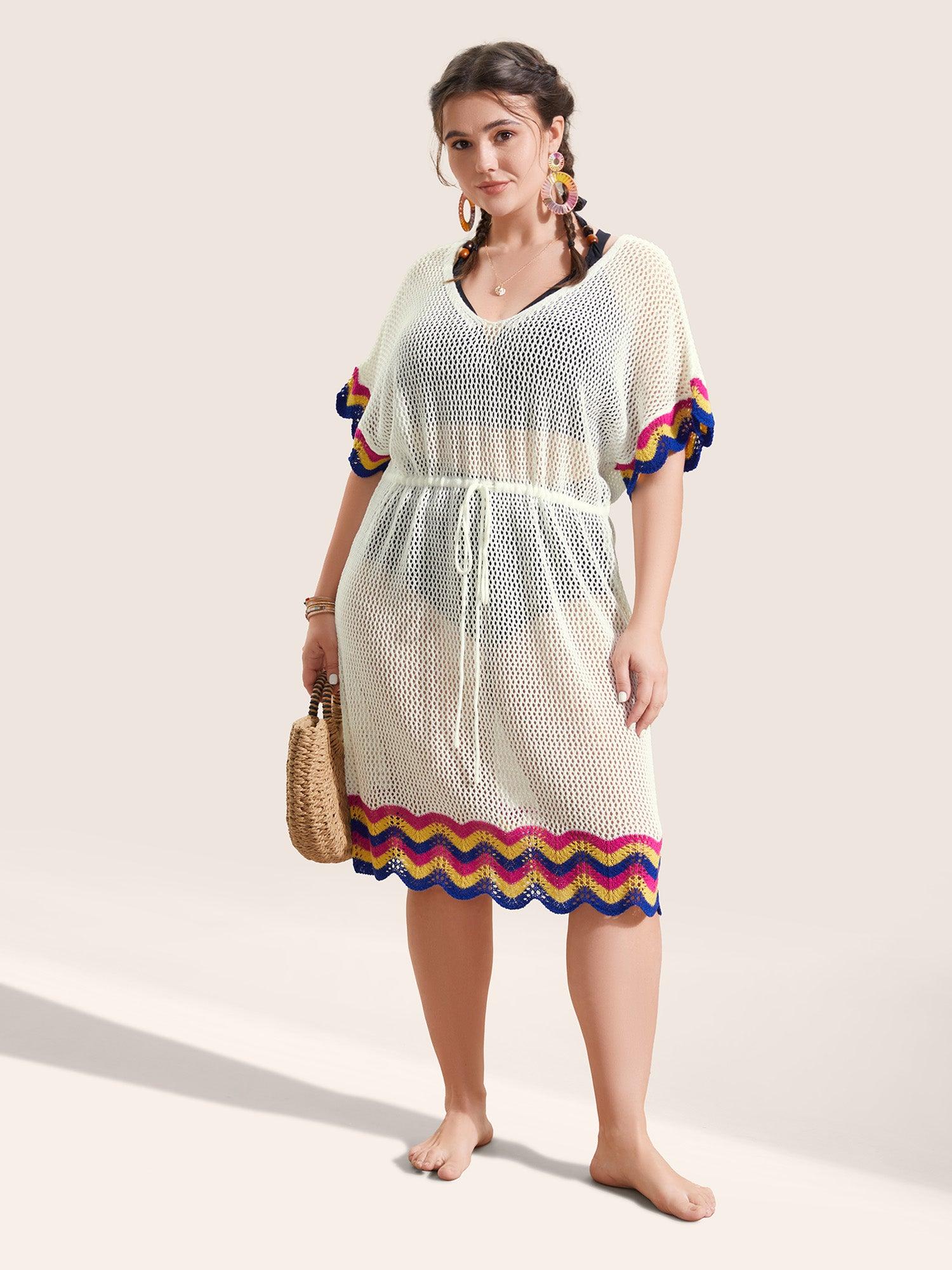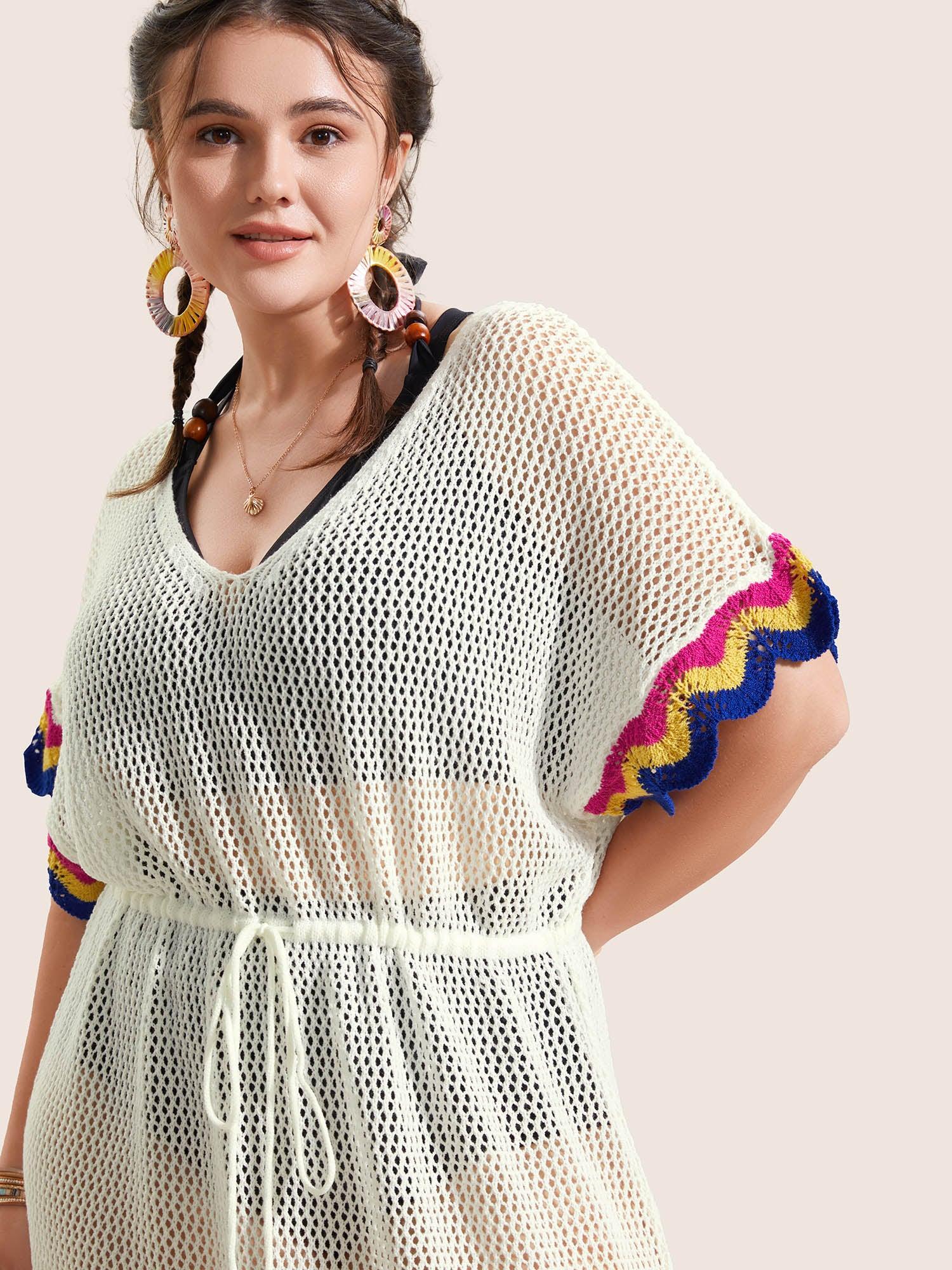 Shop Deep V Neck Contrast Striped Drawstring Swim Cover Up now and redefine your style with confidence at BloomChic. Tailored for mid and plus-size women. This trendy Swimwear Women, sizes 10-30. Season:Summer;Color:Ivory;Style:Beach;Neckline:Deep V-neck;Sleeve Type:Ruffle Sleeve;Prints:Stripes;Details:Cut-Out, Contrast, Texture, See through;Pocket:No-pocket;Belt:No-belt;Closure Type:Non