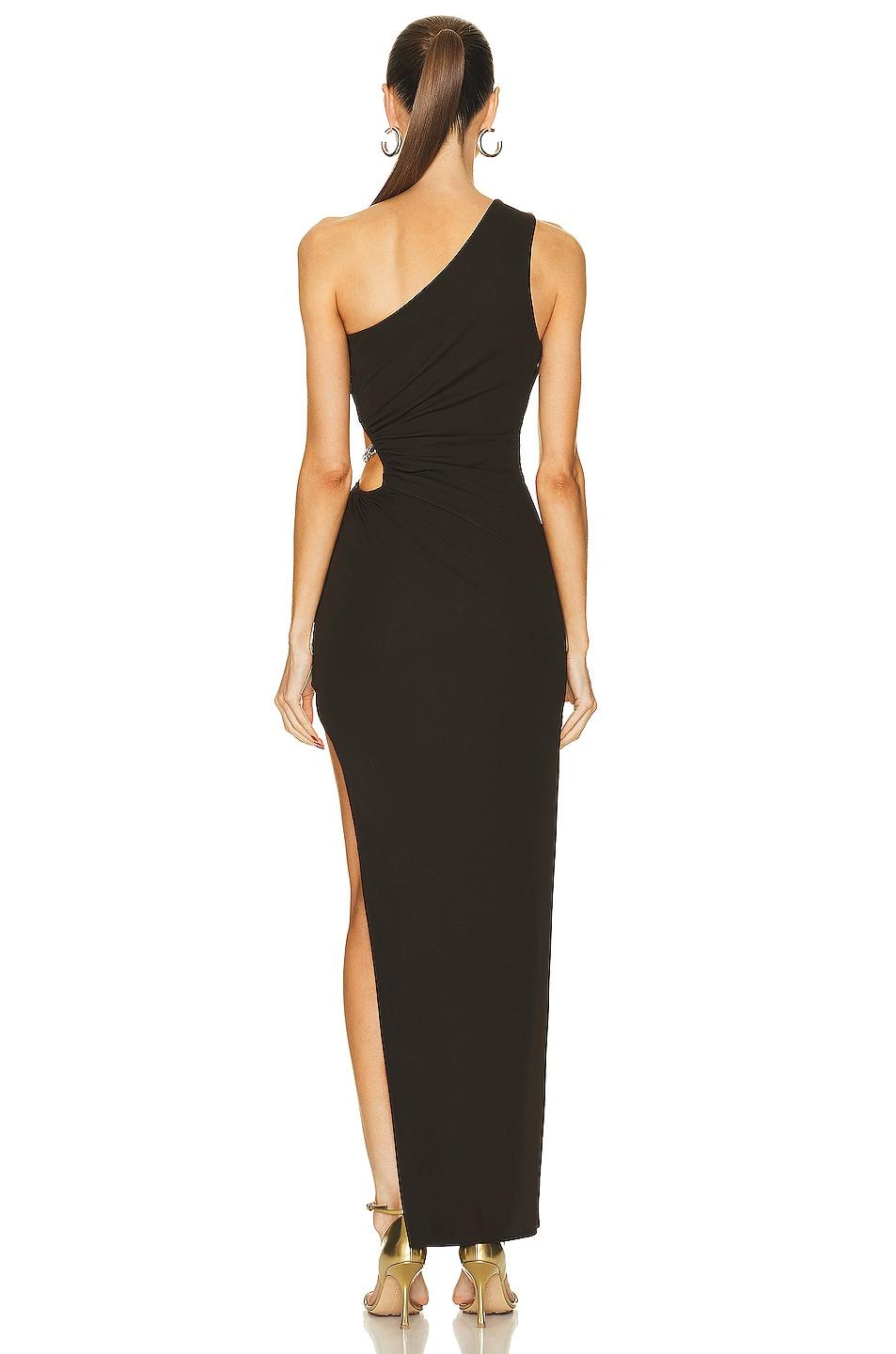 NICHOLAS Defano Asymmetrical Gown with Chain Hardware in Ink - Navy. Size 8 (also in 4, 6, 10). 95% polyester 5% spandex. Made in China. Hand wash. Fully lined. Hidden side zipper closure. One shoulder styling with gold-tone chain detail. Waist cut-out with gold-tone chain detail Side slit. NHOX-WD393. H22D2221E. Established in Melbourne in 2009 Nicholas was an instant cult hit. Known for its effortless and easy to wear style, Nicholas pieces are instantly recognizable with their clean lines, subtle detailing and bold colour palette.