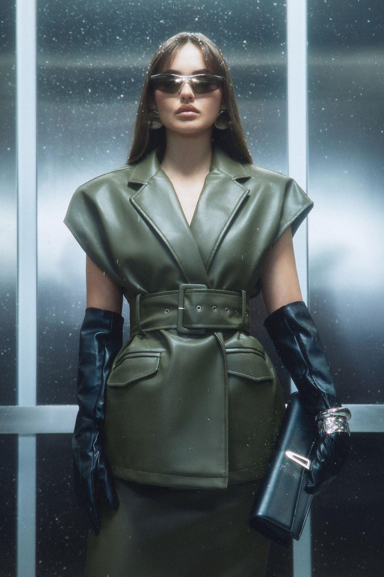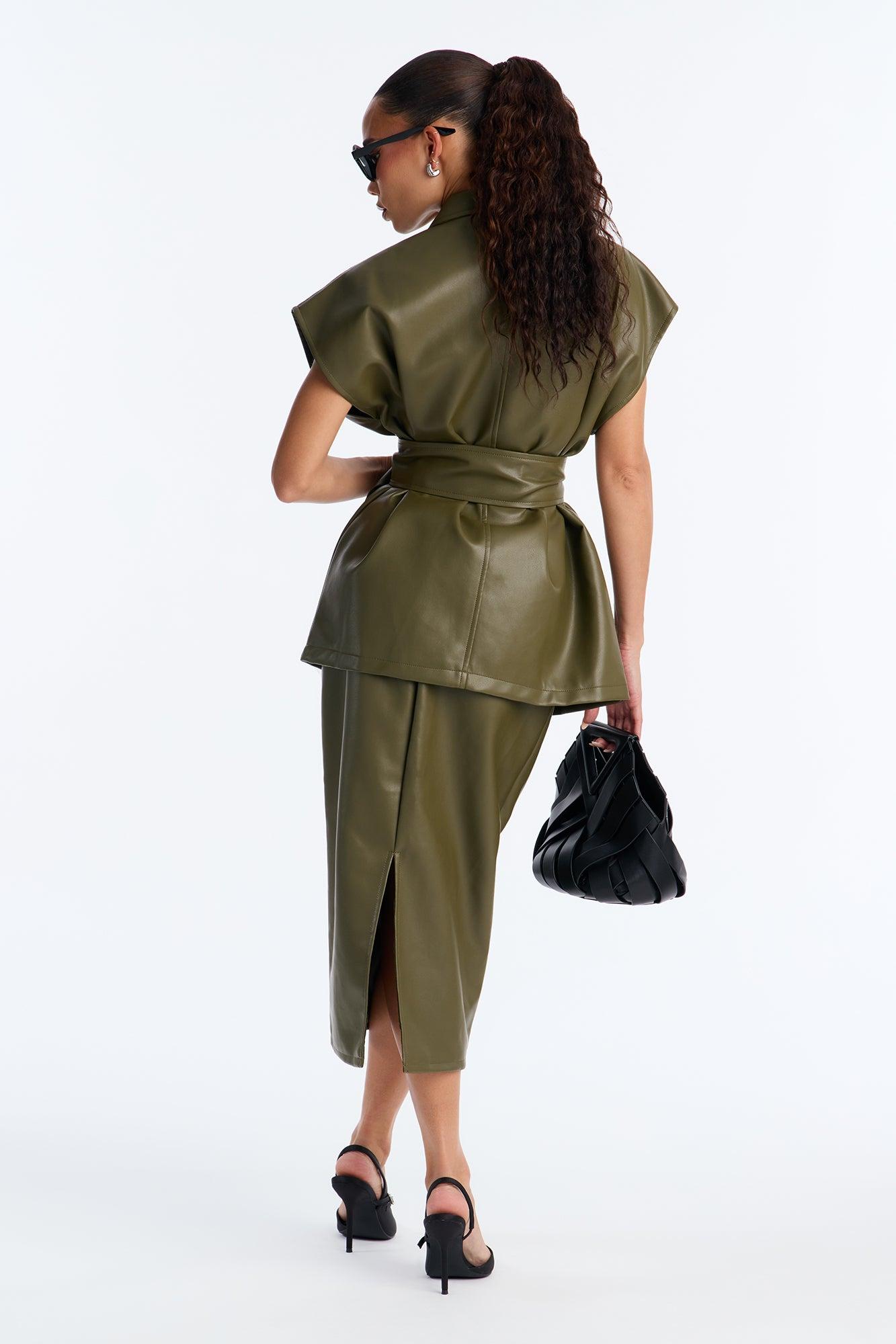Defined By Me Faux Leather Belted Maxi Skirt Set - Olive Female