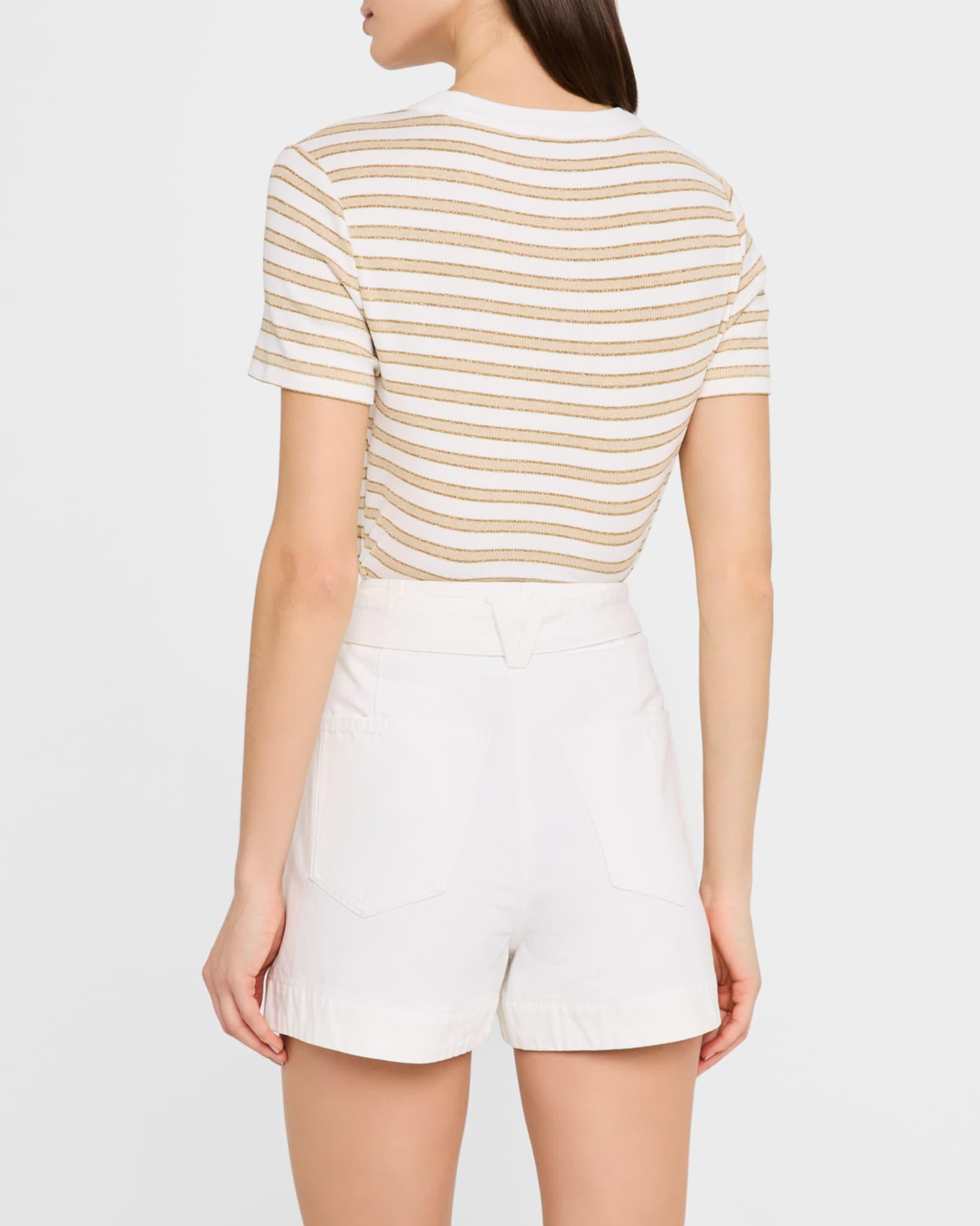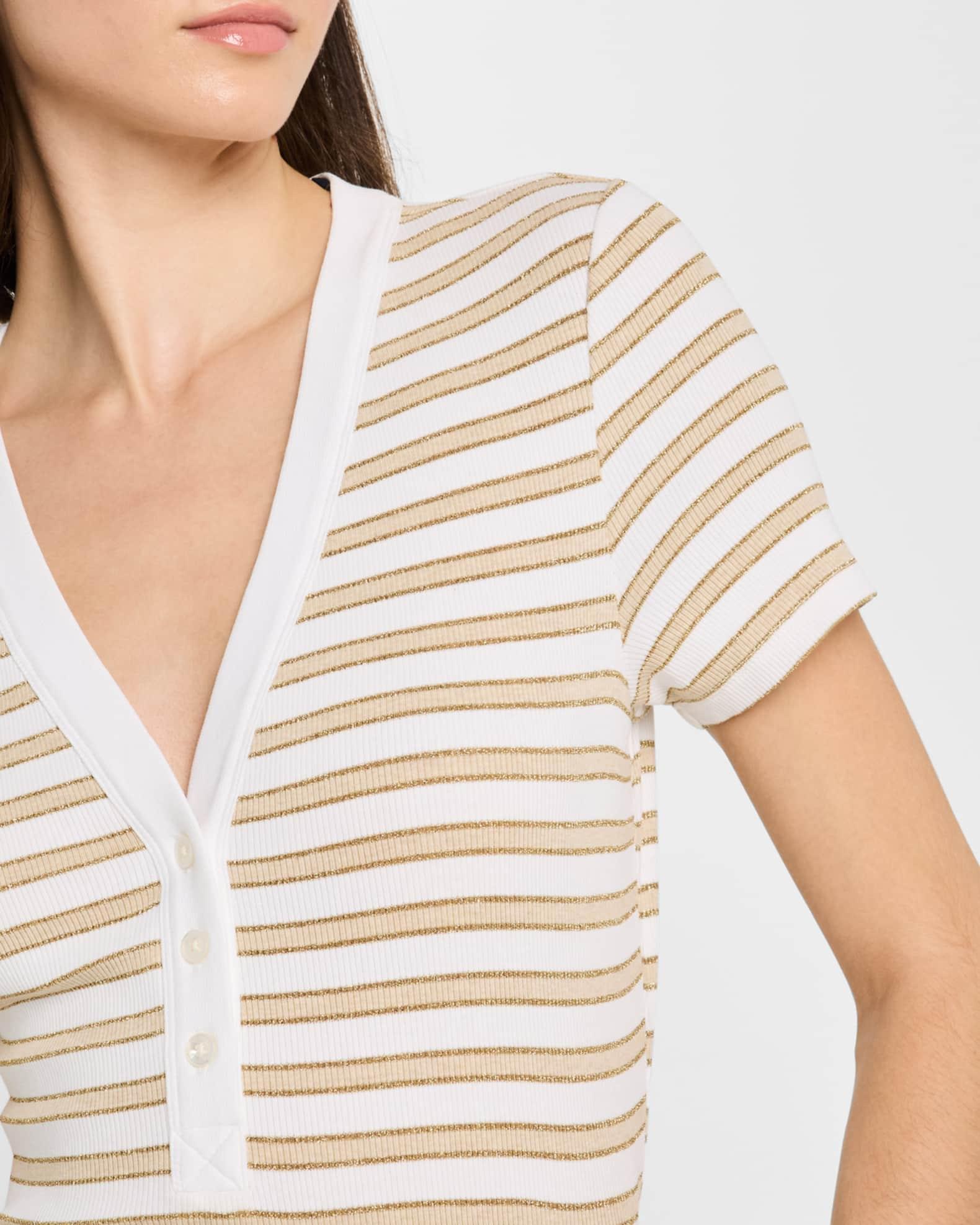 Veronica Beard "Dekalb" striped knit mini polo dress with contrast piping V neckline; button-placket Short sleeves; approx. 14.5"L Easy fit Hem sits at the hip Pullover style Cotton/elastane Unlined Machine wash cold Imported