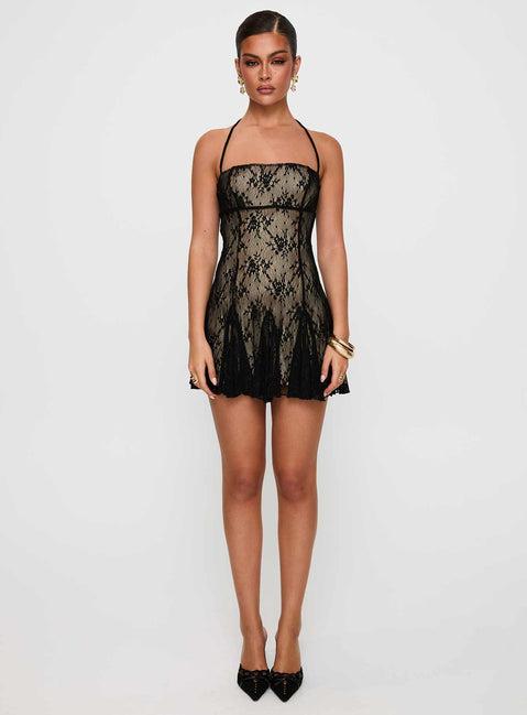 Delamere Lace Mini Dress Black