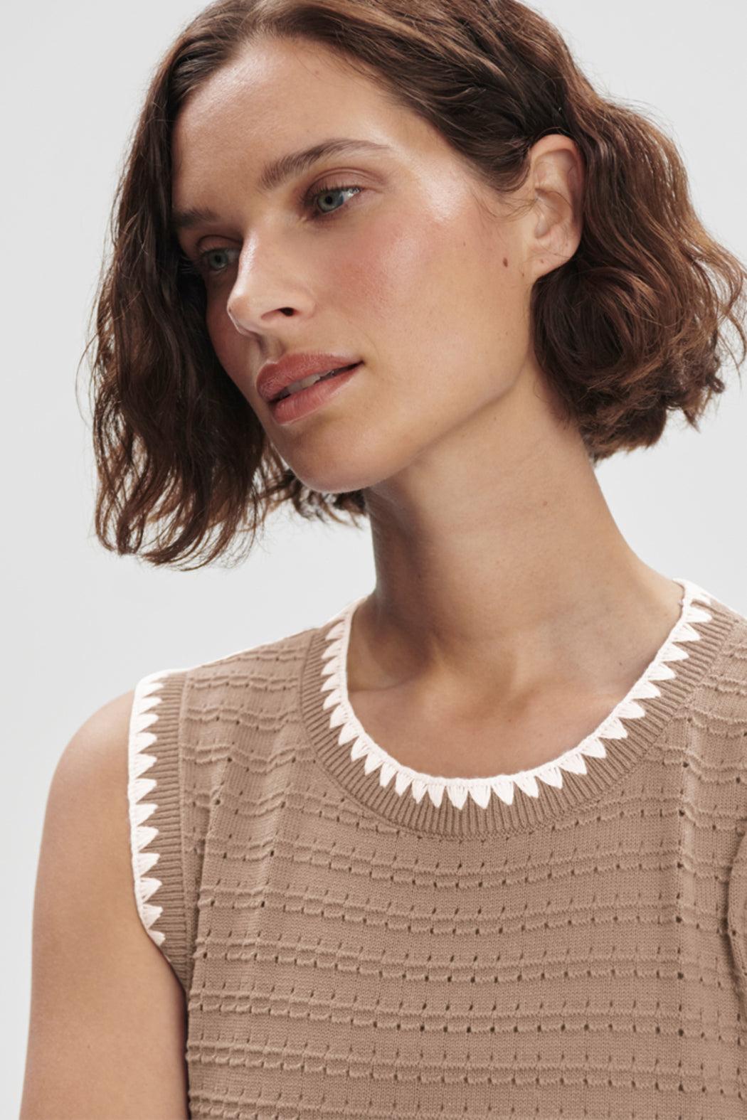 In a striped pointelle knit with side splits and contrasting scalloped edging, the Dwight tank dress elevates your everyday style. Cut for a modern midi length, it’s perfect for beach days with sandals or evenings out.