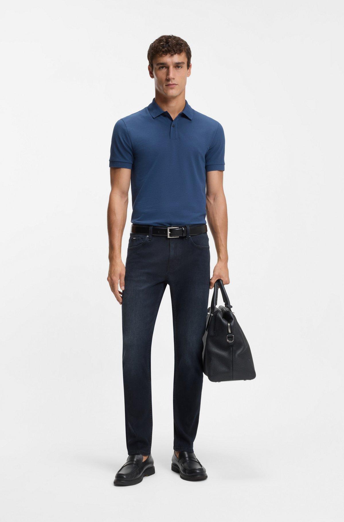 Cut to a slim fit, these BOSS Menswear jeans combine the authentic look of denim with a cozy, knitted quality. Rich blue color.