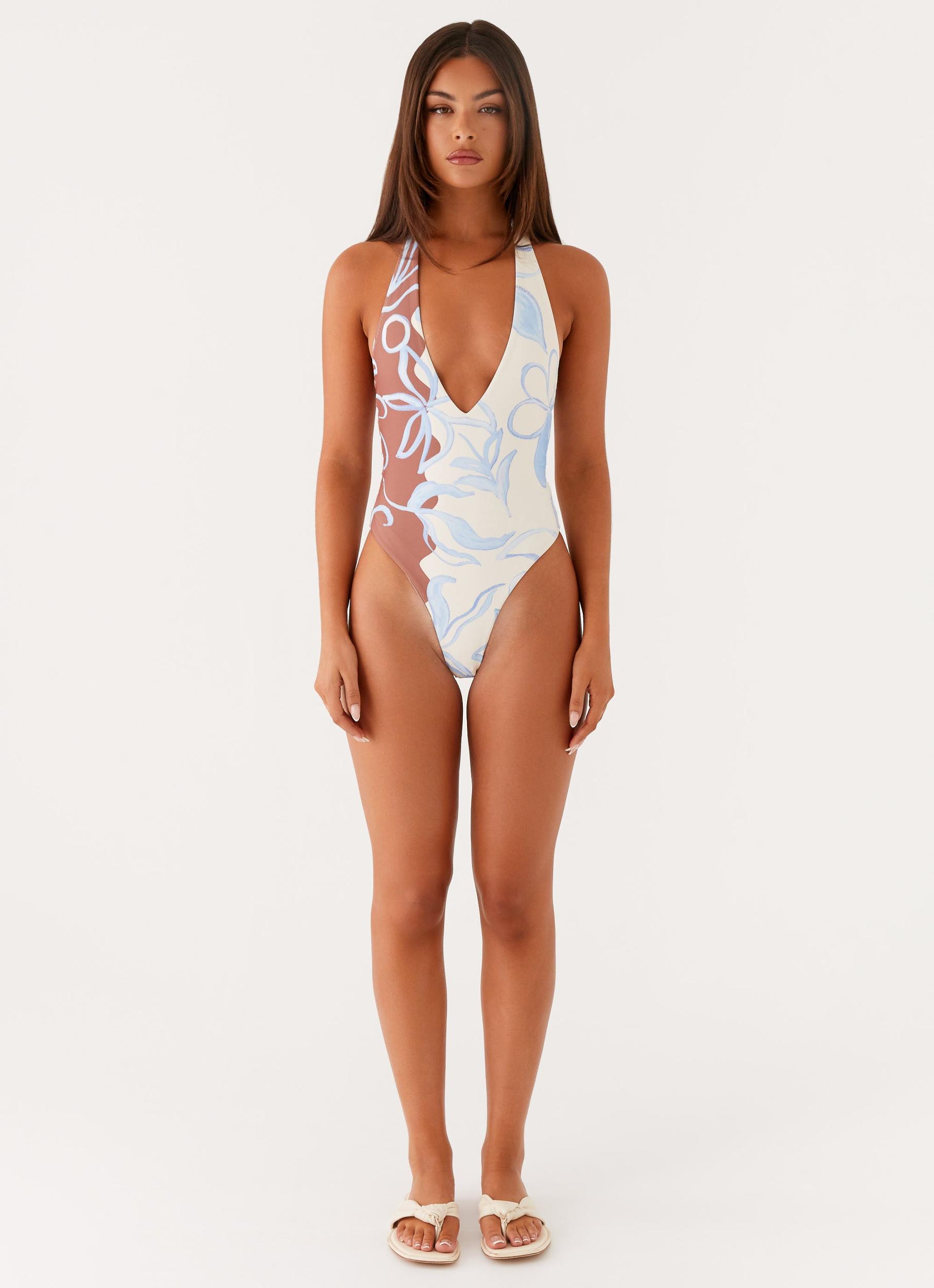 Peppermayo ExclusiveThis version of the Delia One Piece Swimsuit offers the same stunning low v-neckline and backless design, with a stretch jersey fabric that's fully lined for comfort. Whether you're at the beach or lounging poolside, this swimsuit will have you feeling chic and confident.- Low v neckline - Neck straps - Stretch jersey - Fully lined - Backless - 83% Polyester, 17% Spandex - L: 83% Polyester, 17% SpandexSize AU 8 / US 4 garment measurements:Bust - 67cm / 26.4inWaist - 59cm / 23.2inInner seam - 6cm / 2.4inLeg hole - 62.5cm / 24.6inOlivia is 170cm and wears size AU 6 / size US 2