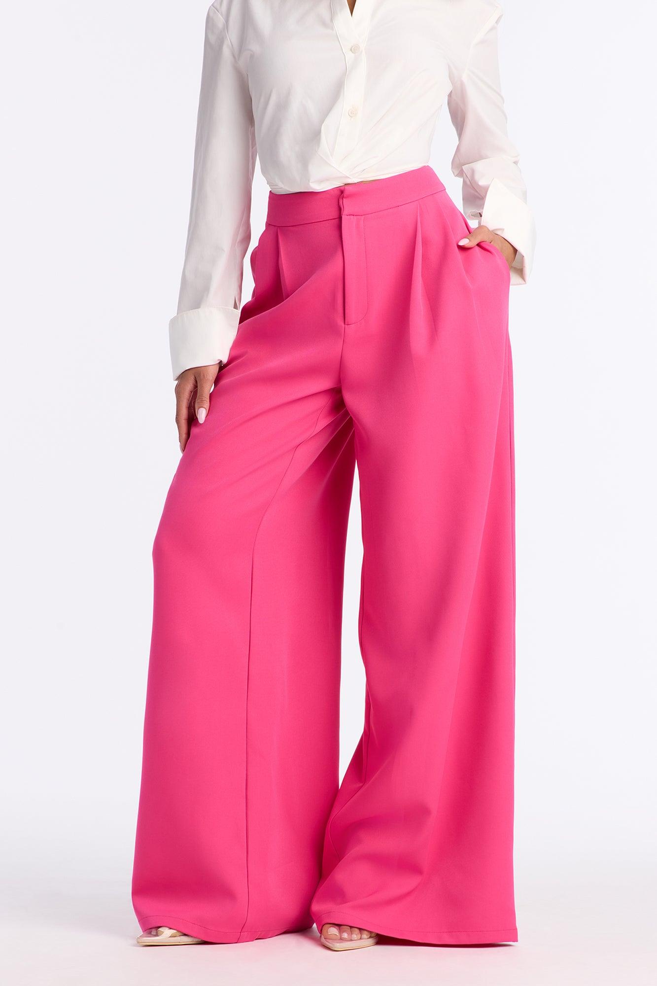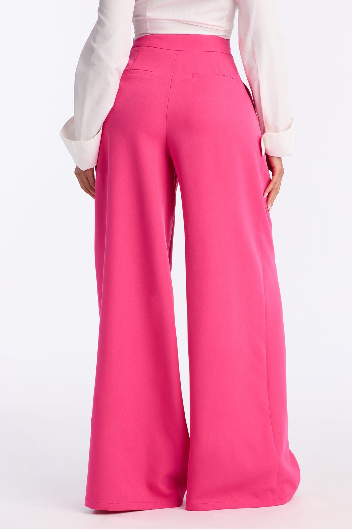 Delia Wide Leg Crepe Trousers 33″ - Fuchsia Female