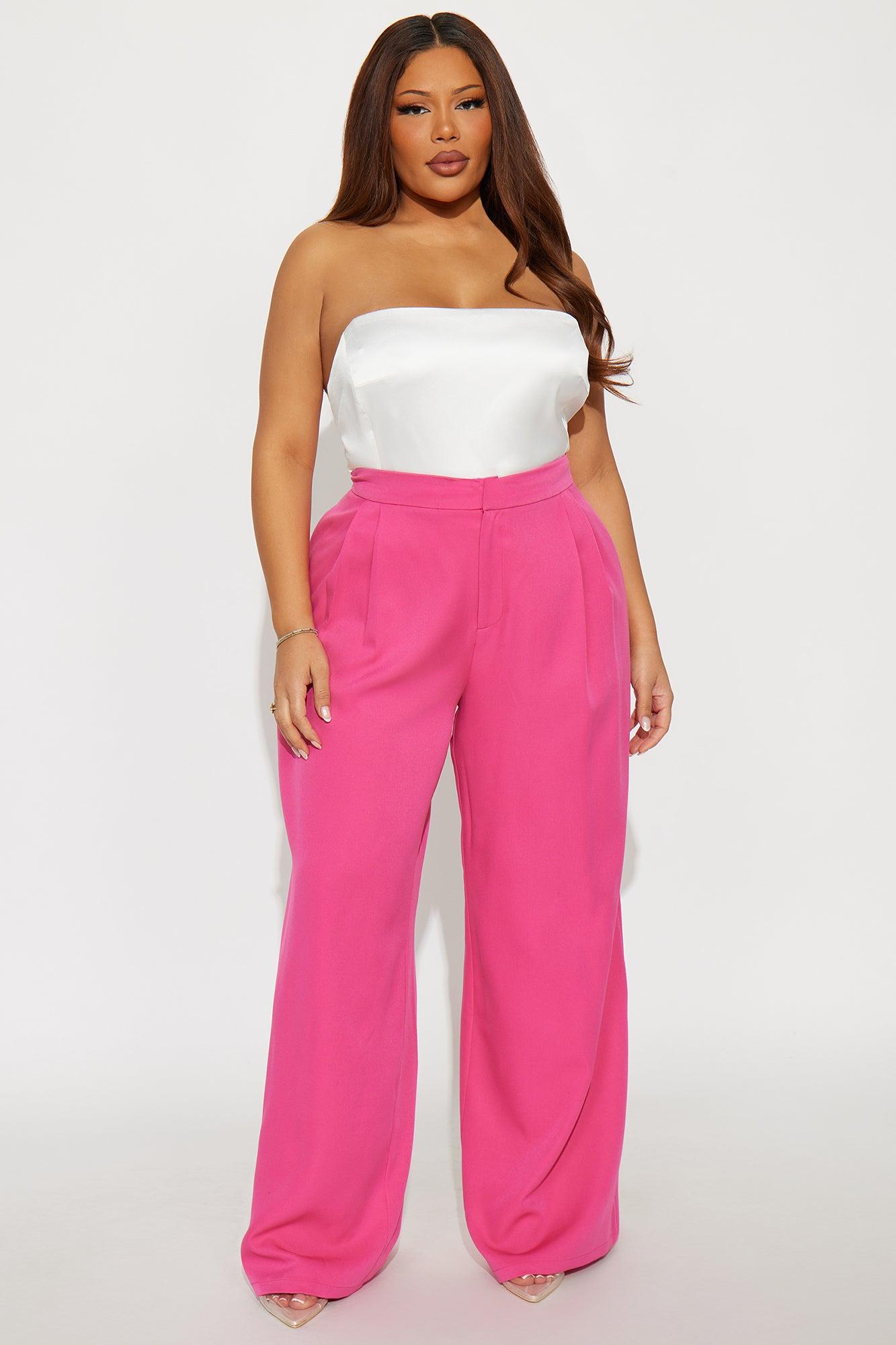 Available In Cerulean, Fuchsia, Mustard And Sage. Crepe Trouser Pants Hook And Zipper Closure Pleated Detail Side Pockets 33" Inseam Wide Leg Self: 95% Polyester 5% Spandex Imported