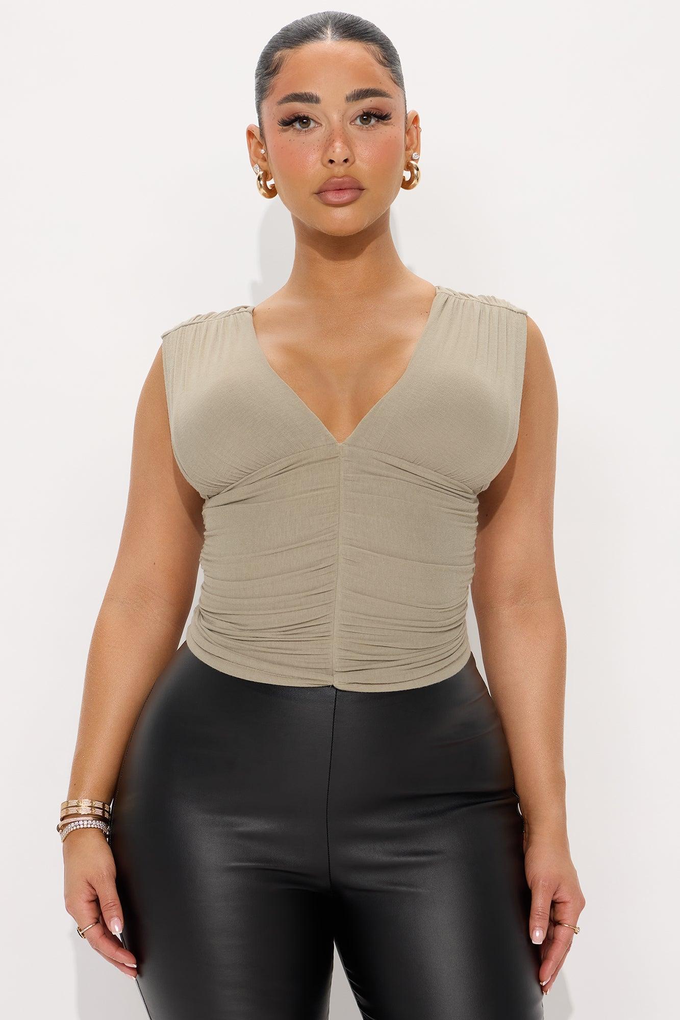 Delilah Ruched V-Neck Double Lined Top - Sage