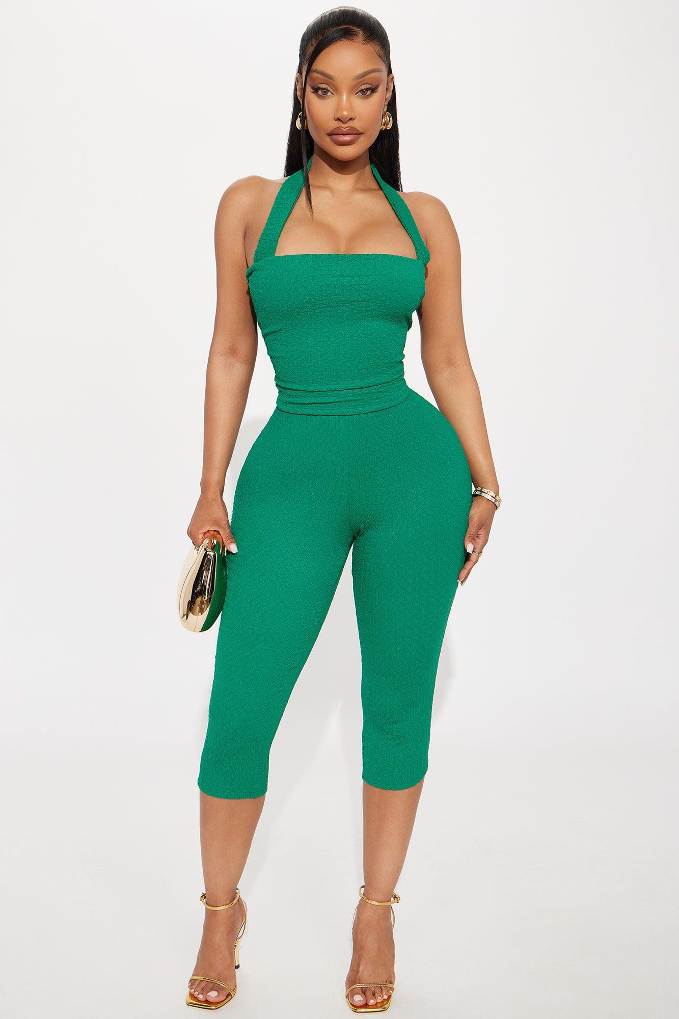 Delilah Textured Halter Capri Pant Set - Kelly Green