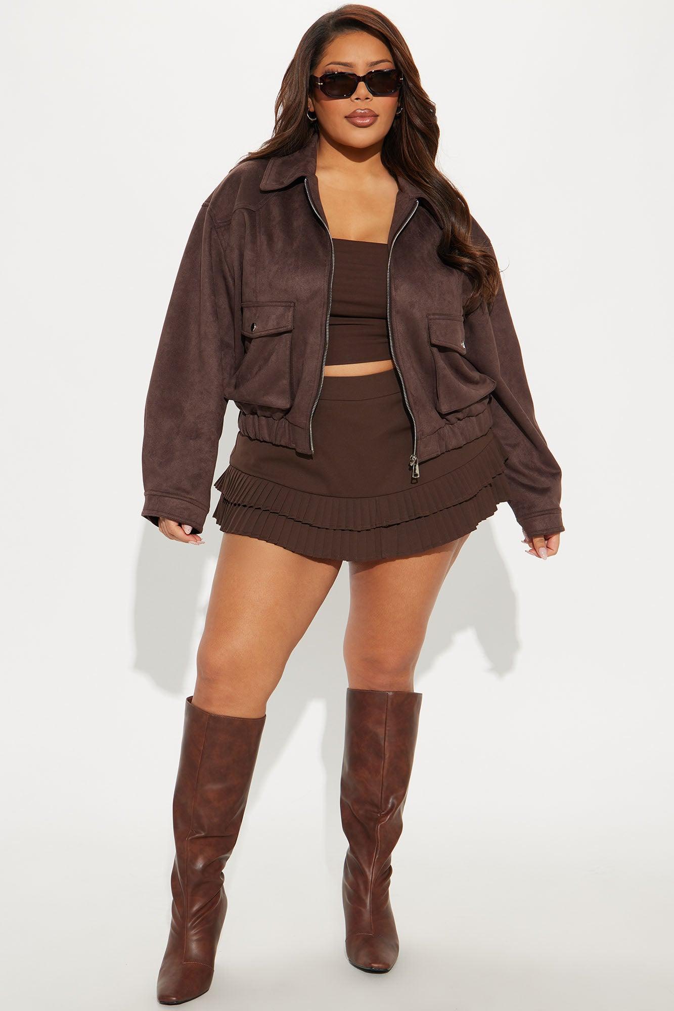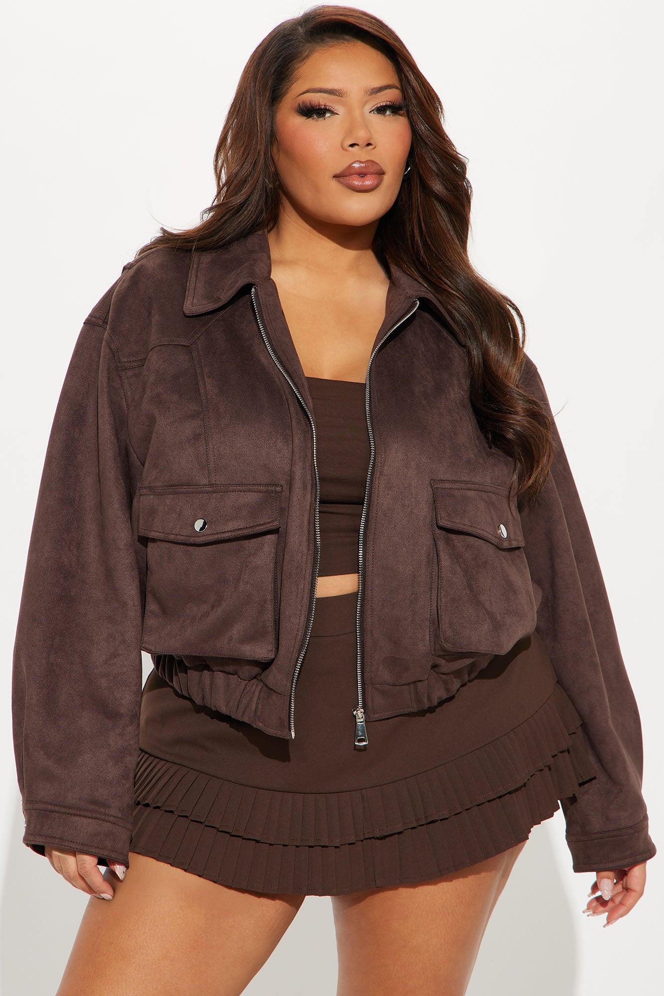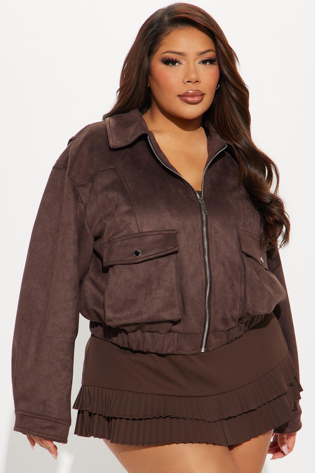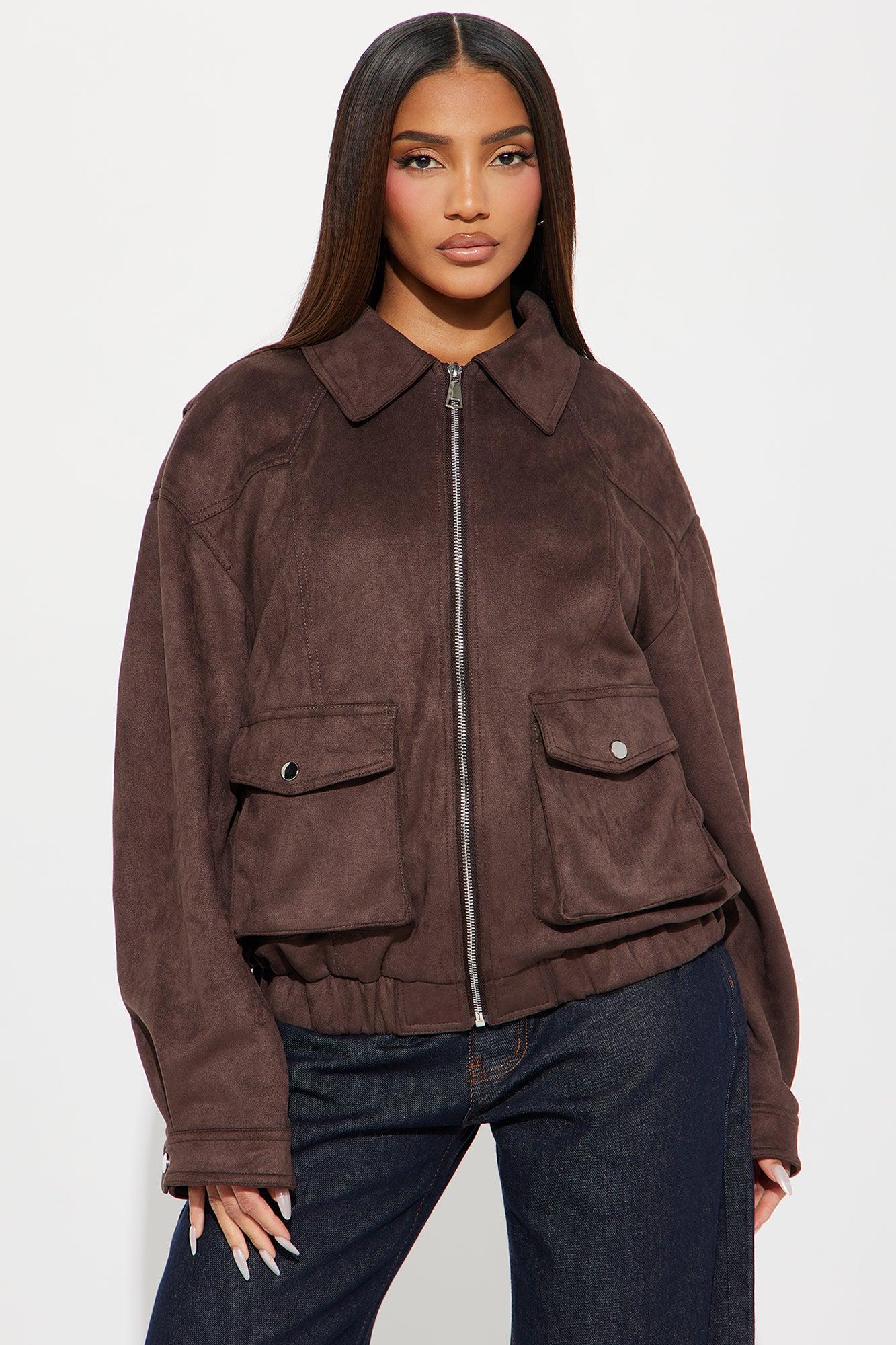 Delilah Washed Faux Suede Bomber Jacket - Chocolate Female