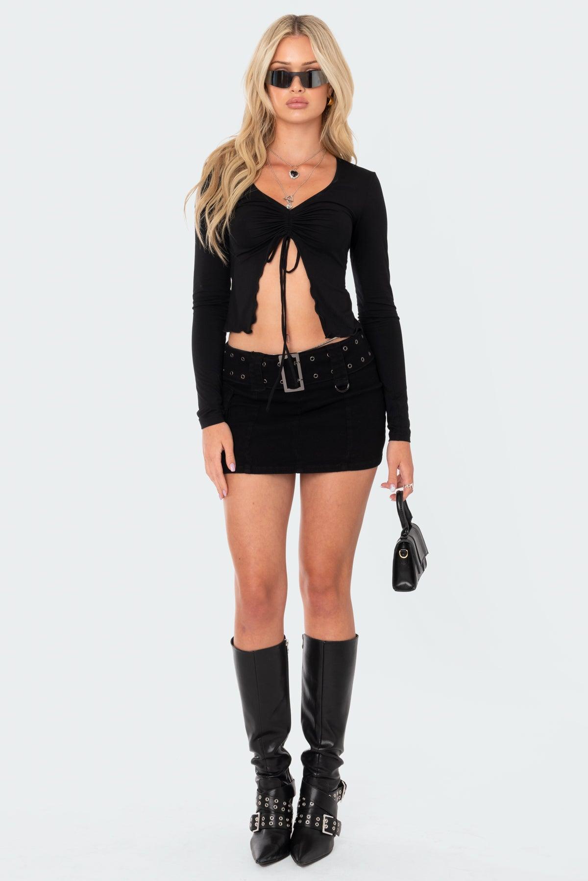 Tie-Front Crop Top in Black