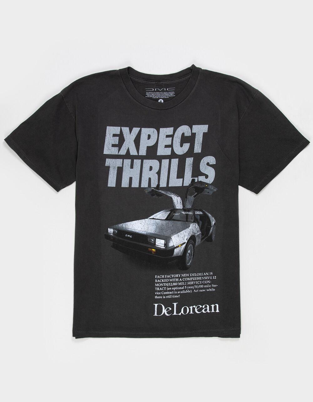 DeLorean Thrill Tee. Large distressed graphic screened on front. Crew neck. Short sleeve. 100% Cotton. Machine wash. Imported.