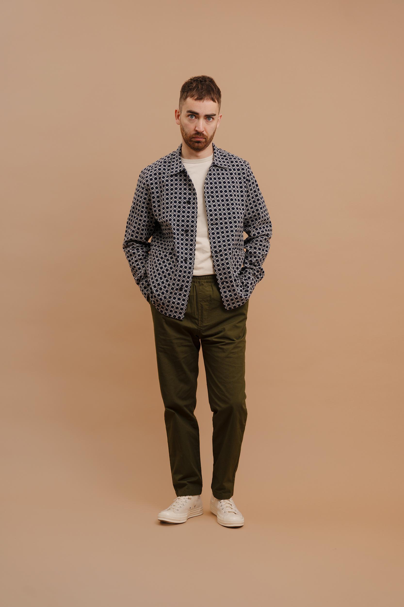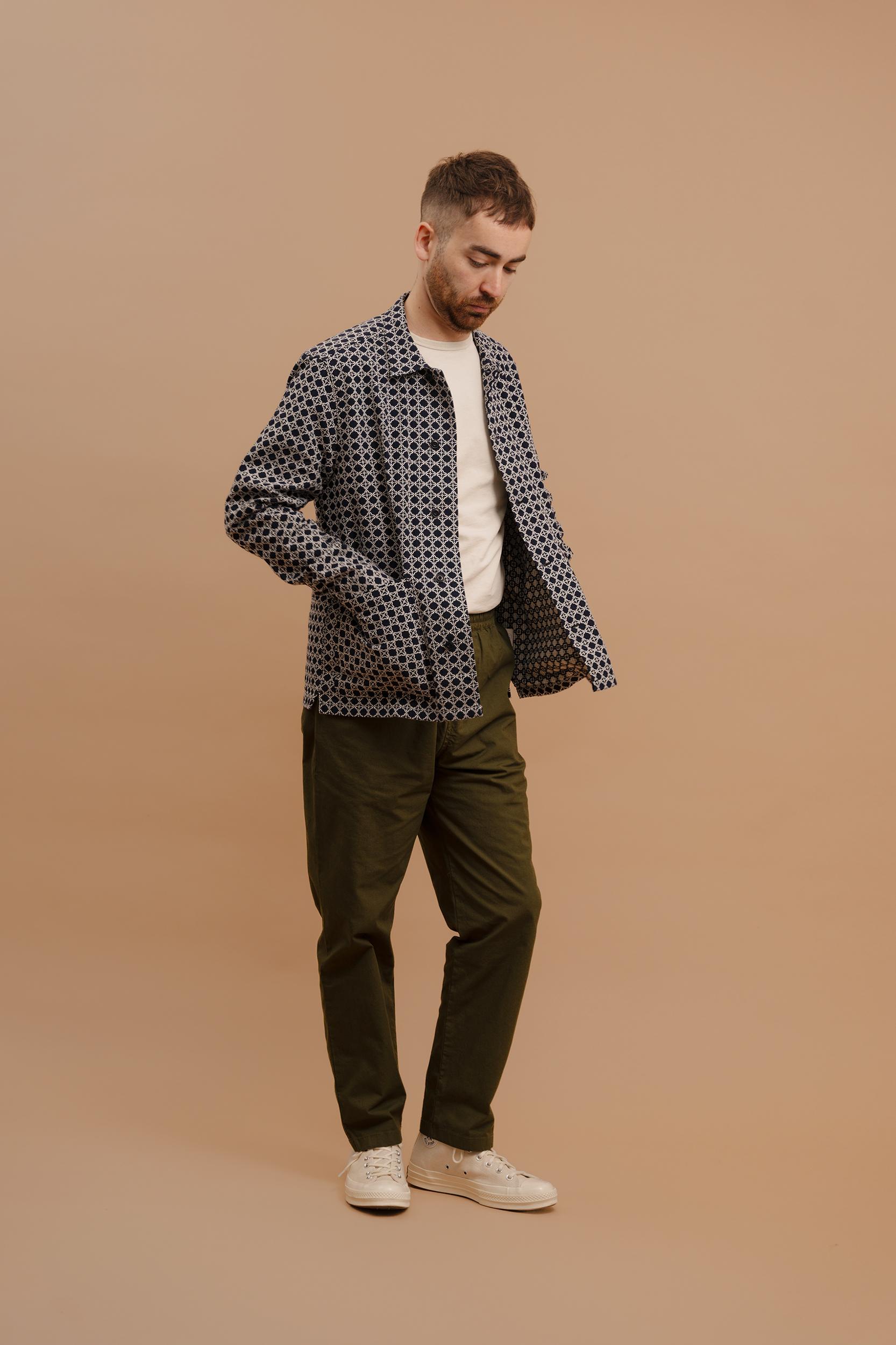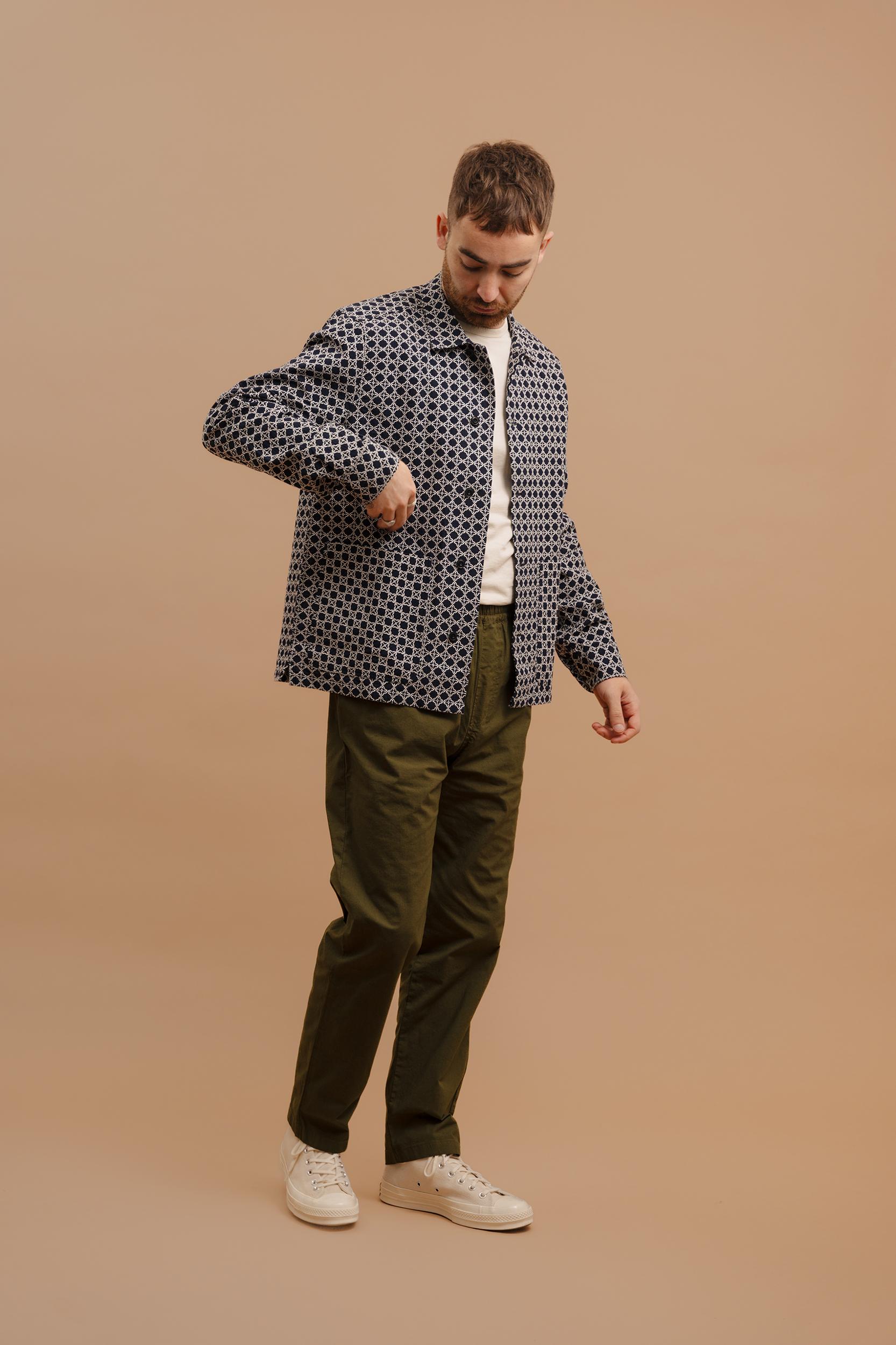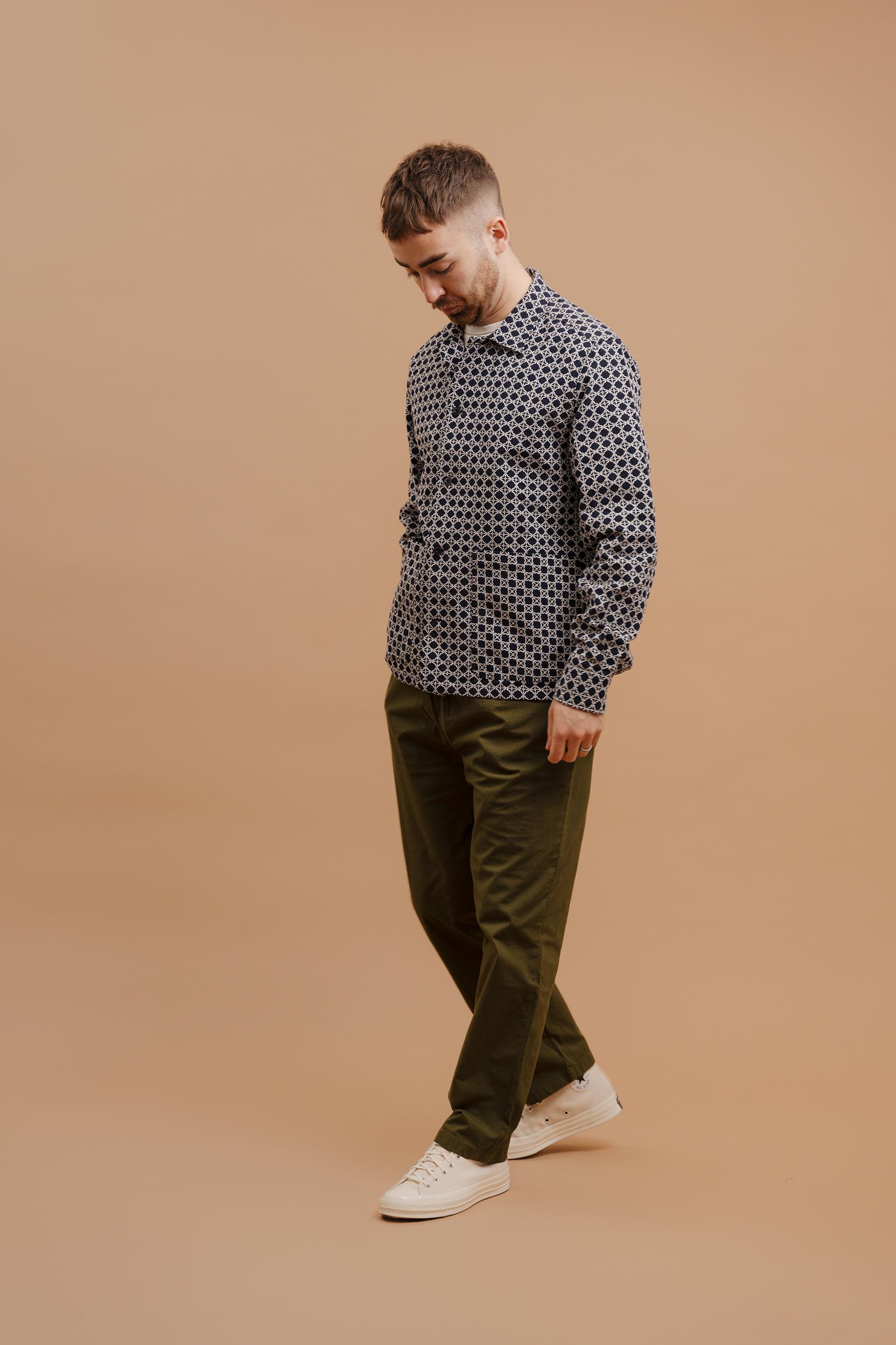 The Delos Jacquard Overshirt is based on our original Studio Overshirt and detailed with two lower patch pockets, off-centre buttons and single piece collar. Crafted from a mid-weight, beautiful jacquard design from Portugal. Perfect as a top or middle layer. Finished with premium, sustainable corozo nut buttons. Cut f