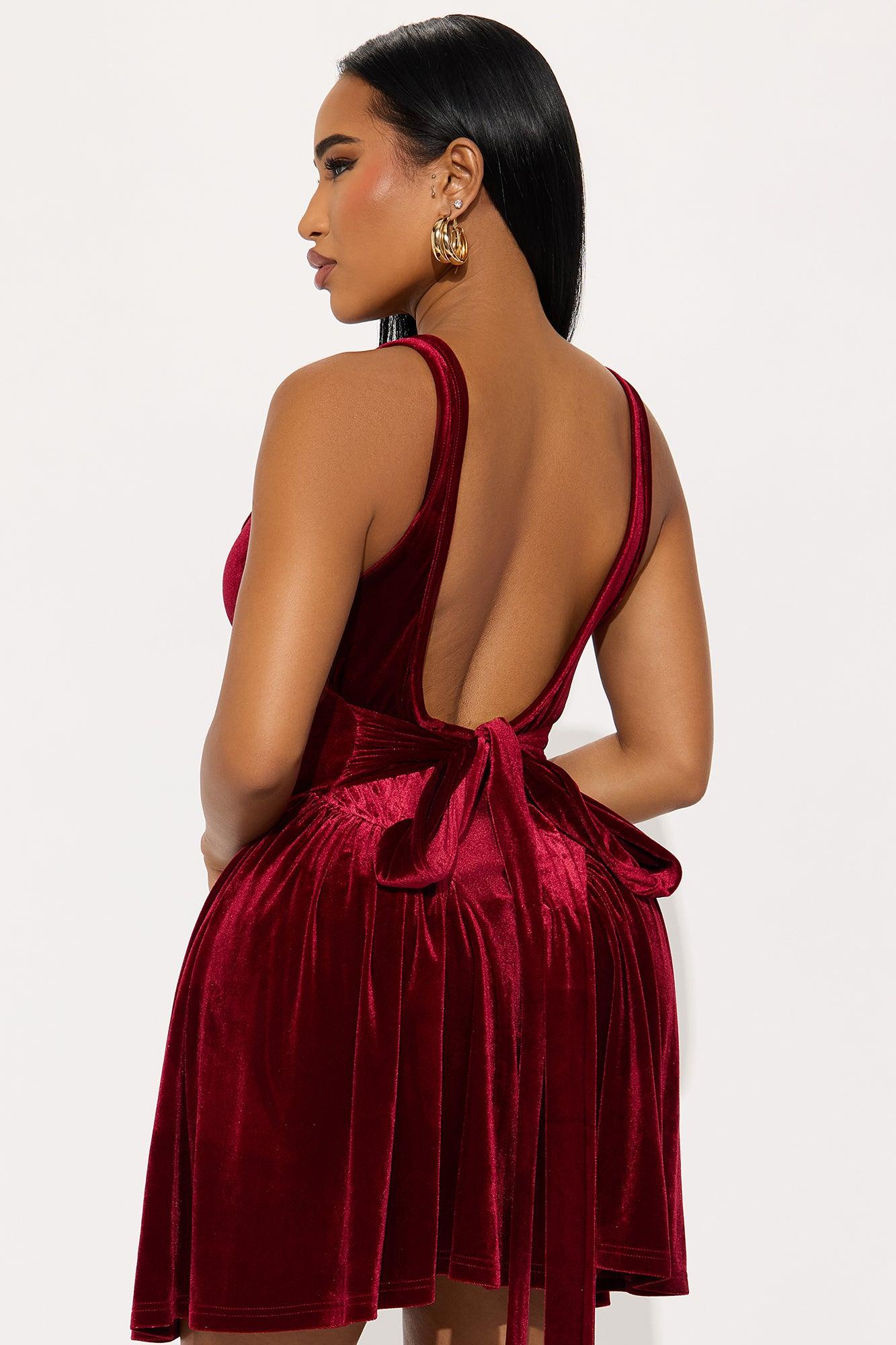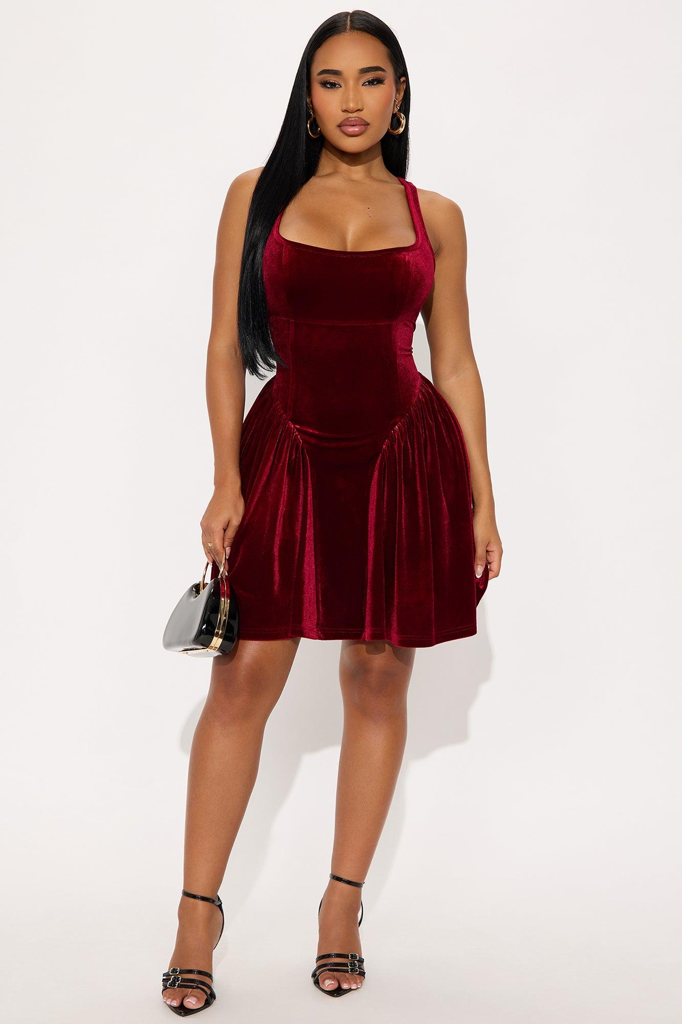 Delphie Drop Waist Velvet Mini Dress - Burgundy Female
