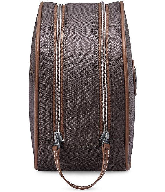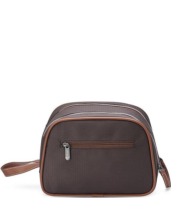 From the Chatelet Air 2.0 Collection by Delsey Paris, this toiletry bag features: Delsey’s most iconic collection boasts an array of exciting new features, including corner protectors for extra durability, a deluxe interior with antimicrobial lining fabric, as well as a variety of new styles, sizes, and colors, providing travelers with stylish and matching options for daily use or longer journeys. The newly launched collection is also much lighter, ensuring travelers can pack even more for their getaways. Made of recycled polyester This toiletry bag is the perfect addition to your Chatelet Air set to safely store your toiletries, makeup, and small accessories. Convenient and large wide-mouth opening Durable, eco-friendly chevron pattern fabric made with recycled water bottles and vegan leather-trim mirror our unmistakable iconic Chatelet Air suitcase Vegan leather trim and carry handle Exterior: Zippered pocket on the rear of the bag Interior: Zippered pocket, 2 elastic pockets and an open wet pocket for great organization Soft touch lining treated with SILVADUR™ antimicrobial technology, eliminating bacteria and providing effective odor control Approx. 10.25" L x 5" W x 7.25" H Weight approx. 0.7 lbs. Spot clean 10-year worldwide warranty Imported.