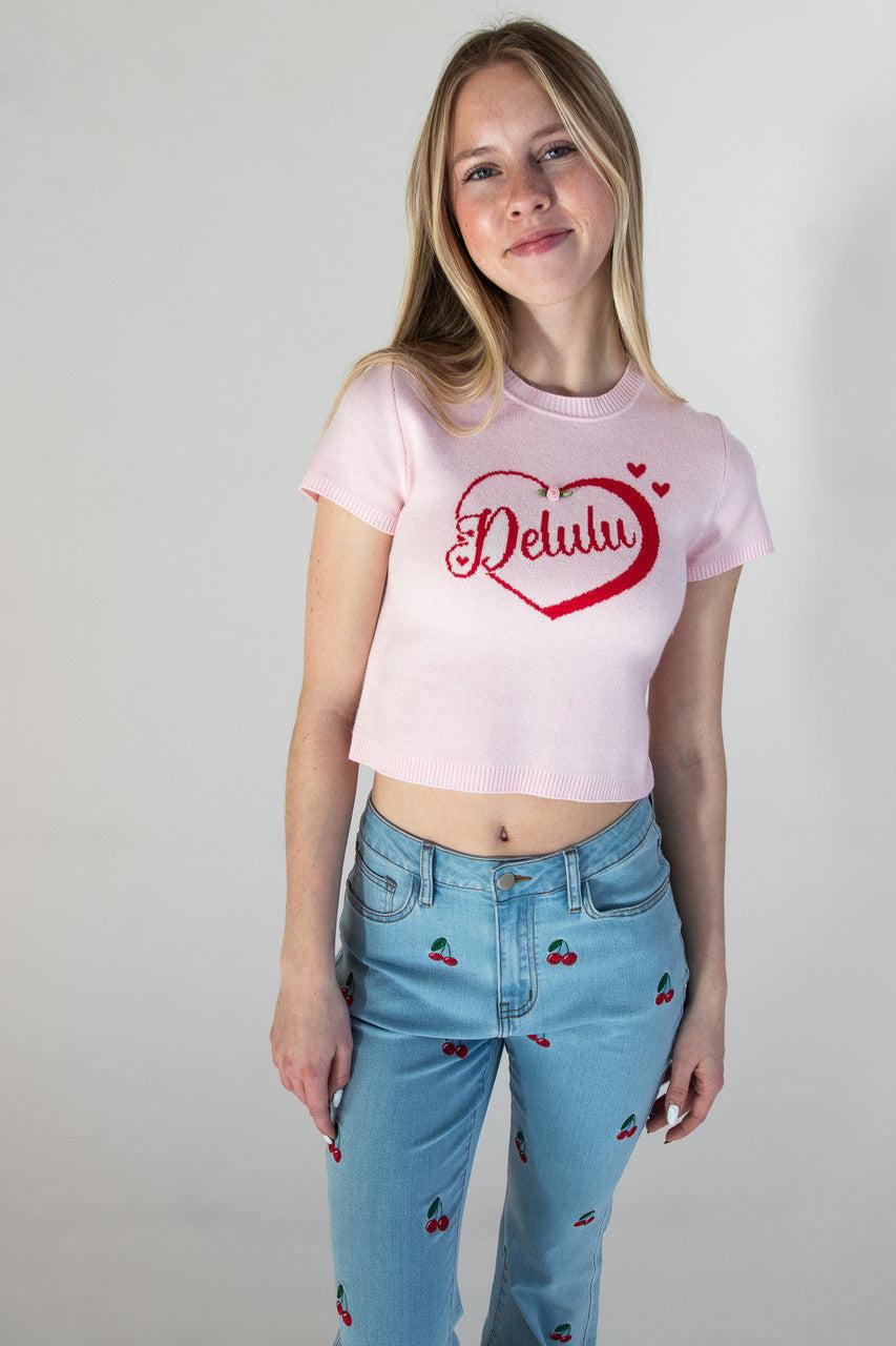 Delulu Short Sleeve Sweater Top