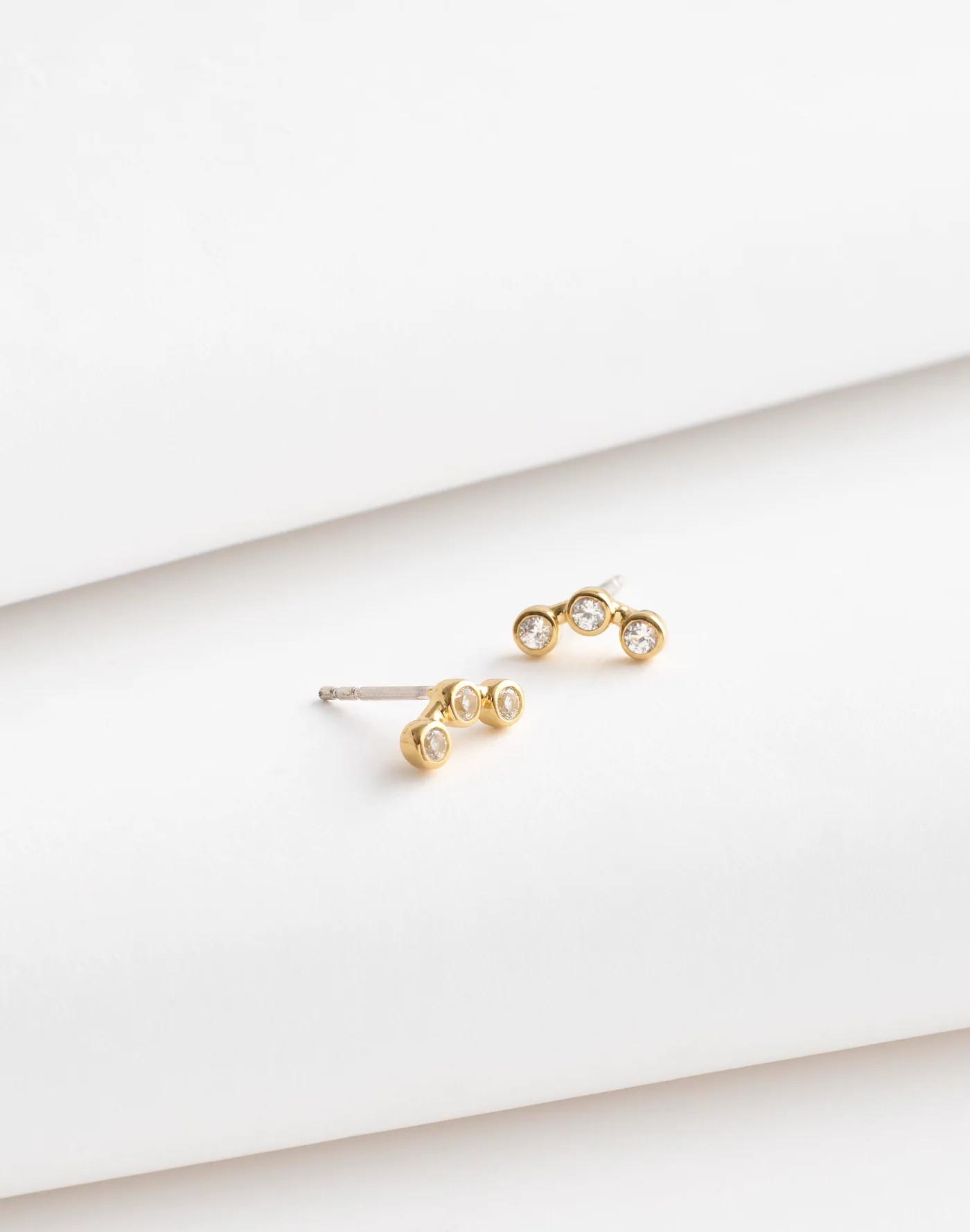 Crafted from 14K gold-plated sterling silver, our Demi-Fine pieces are future keepsakes meant to be layered and worn every single day (think of them as your jewelry BFFs). These sparkly stud earrings climb up your lobes for an instant ear party.