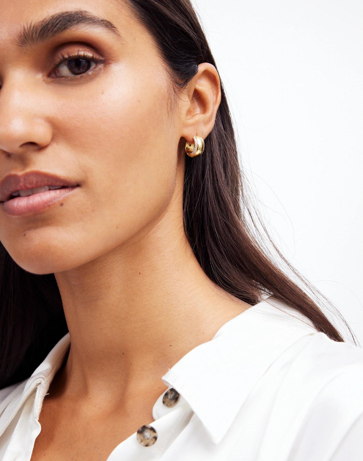 Crafted of 14k gold over sterling silver, our Demi-Fine pieces are future keepsakes meant to be layered and worn every single day (think of them as your jewelry BFFs). Studded with prong-set cubic zirconia at the sides, these huggies are made to dress up your lobe look.