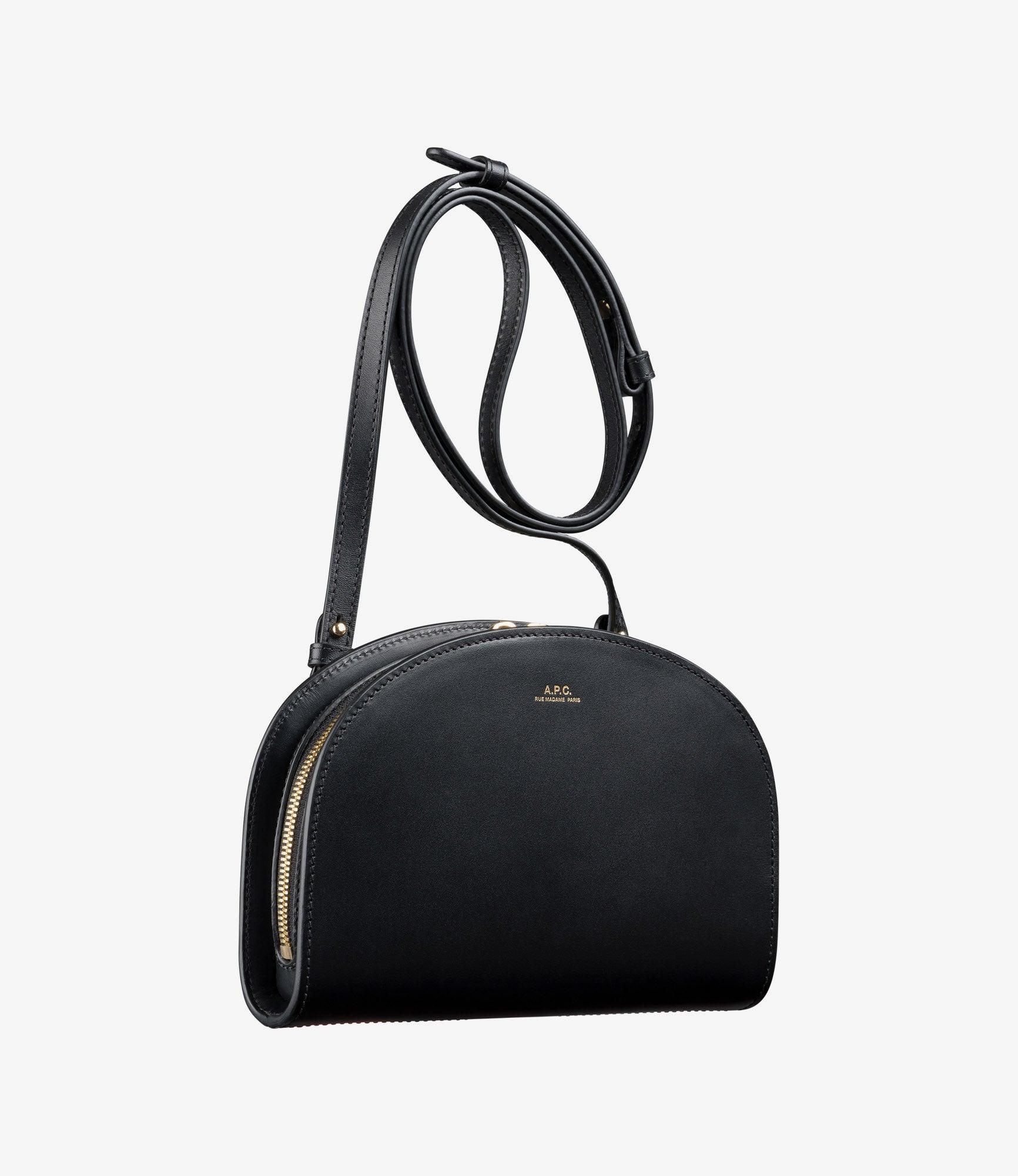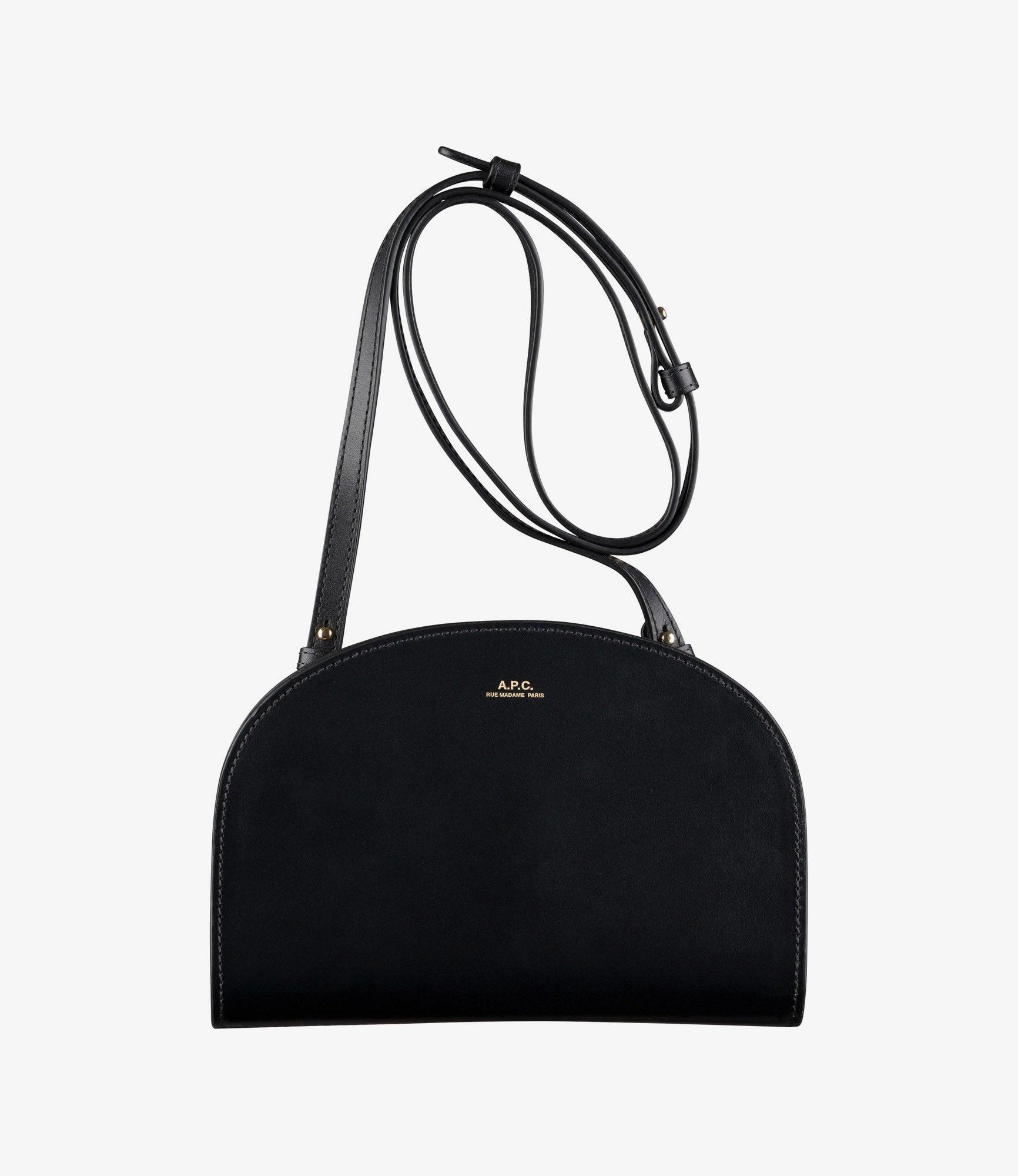 A.P.C. Women's bag. - Bag in smooth vegetable-tanned leather.- Signature rounded top of the Demi-Lune line.- Zip closure.- Interior pocket.- Shoulder strap adjusts with metal buckle.- May be carried on shoulder or across chest.- Embossed goldtone 'A.P.C. Rue Madame Paris' logo.