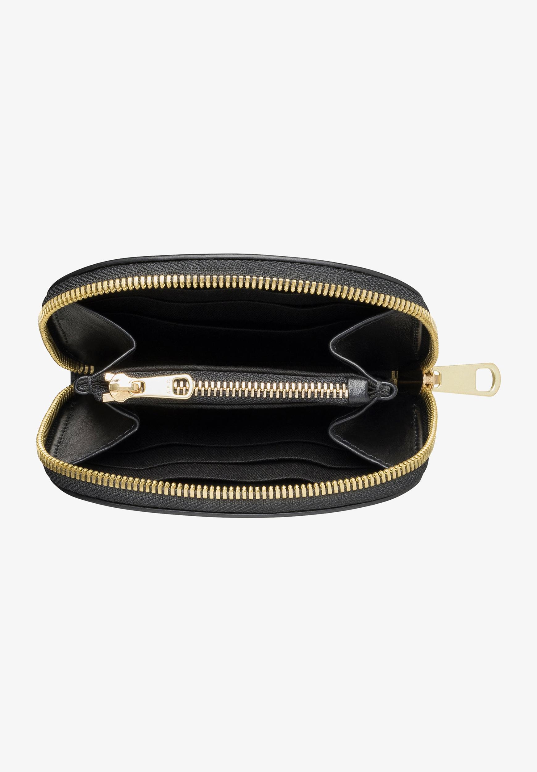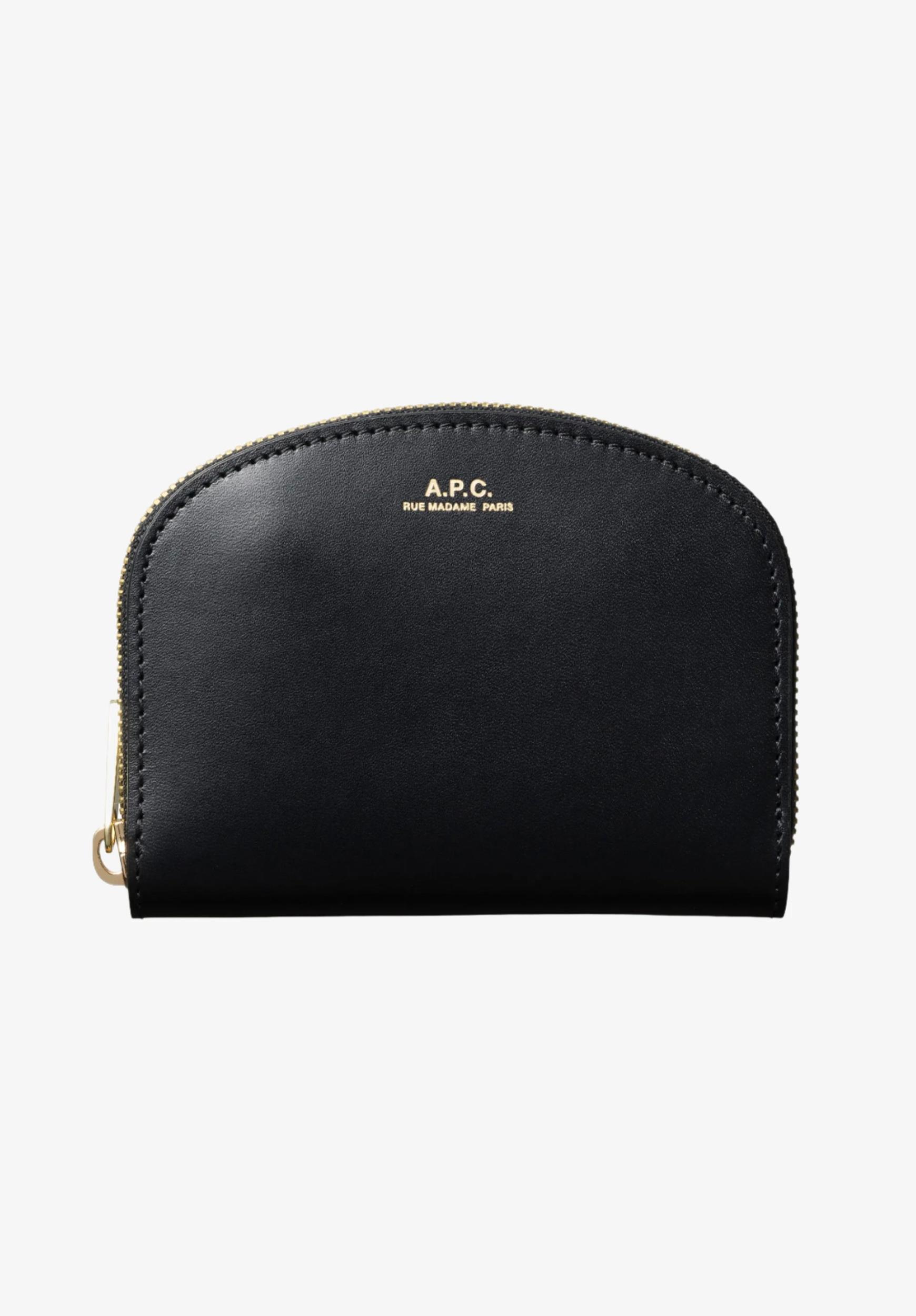 A.P.C. Women's wallet. - Combination coin purse and cardholder in smooth vegetable-tanned leather with a rounded shape.- Goldtone zip closures.- Zip pull engraved A.P.C.- Compartment divided into 2 gusseted pockets.- Each pocket has 3 card slots.- Zip coin pocket in the center.- Leather and cotton lining.- Embossed goldtone 'A.P.C. Rue Madame Paris'.