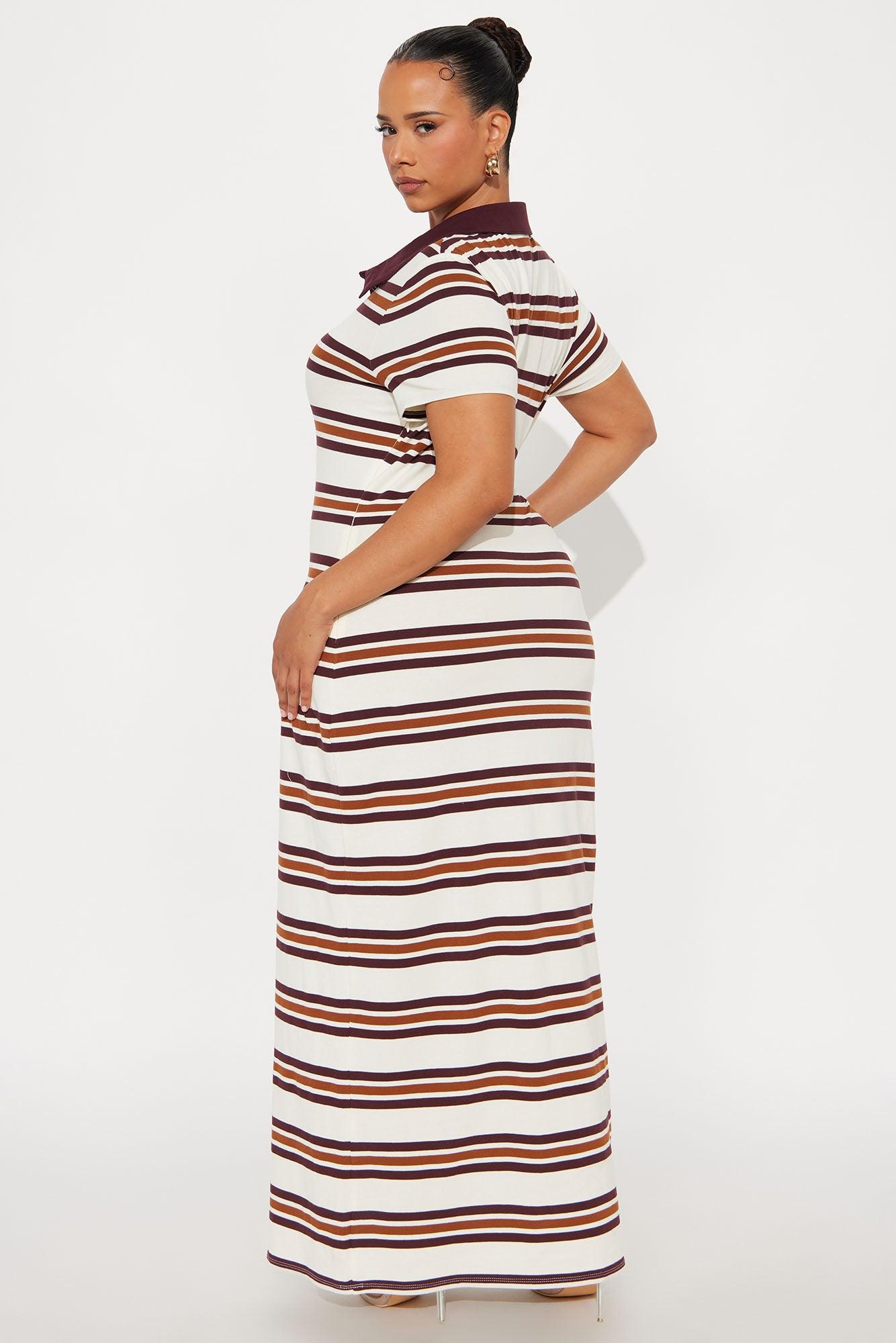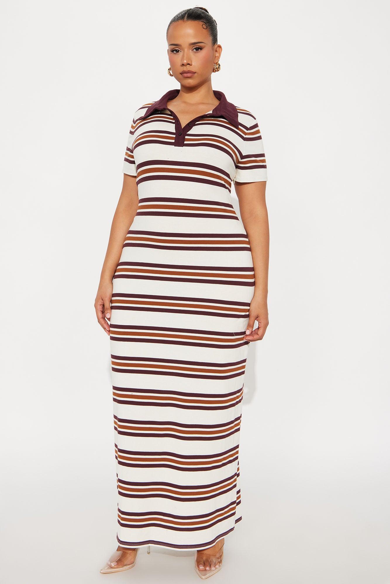 Available In Brown/combo And Burgundy/combo. T Shirt Maxi Dress Collar Short Sleeve Button Up Detail Stretch Self : 92% Cotton 5% Rayon 3% Spandex Contrast : 92% Cotton 8% Spandex Imported California Proposition 65WARNING: Cancer and Reproductive Harm - www.P65Warnings.ca.gov.