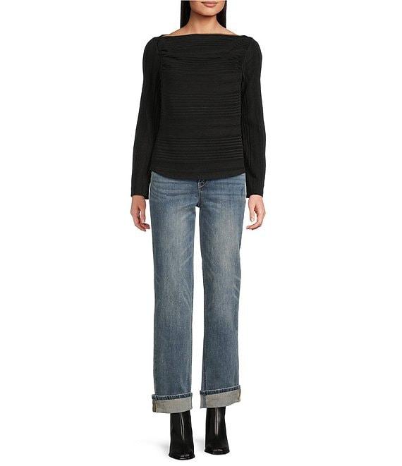 Democracy Boat Neck Long Sleeve Shirttail Hem Knit Top