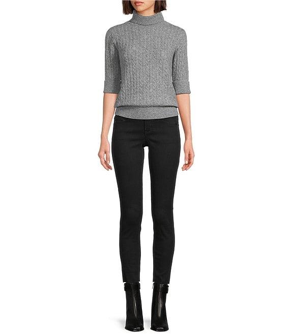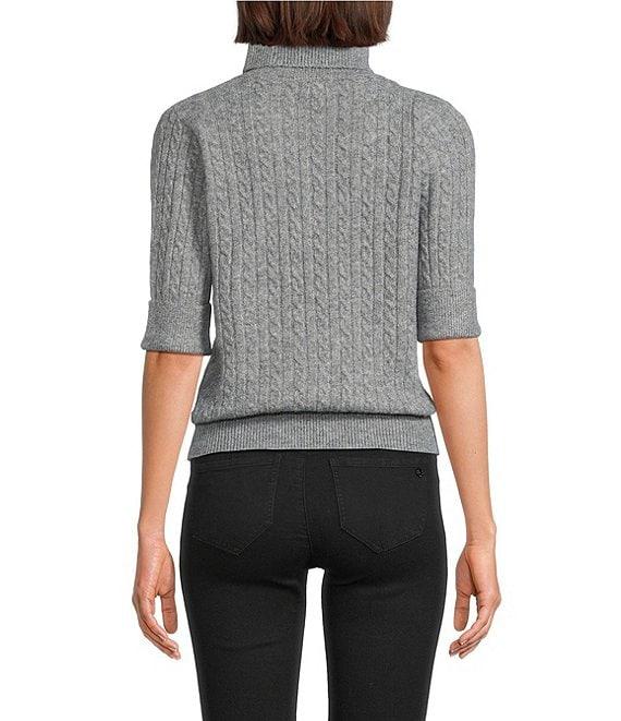 Democracy Cable Stitch Knit Ribbed Turtleneck Elbow Sleeve Sweater