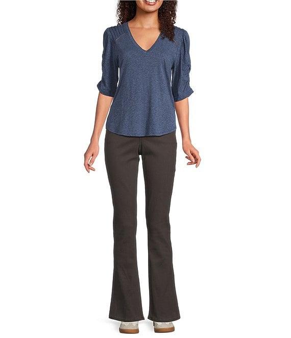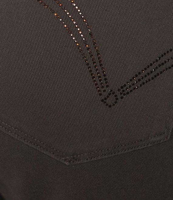 From Democracy, these jeans feature: Stretch denim fabrication Boot leg High-rise Belt loops 5-pocket style Rhinestone cascading-D Button/zip fly Approx. 32" inseam, 18" leg opening, 10" front rise, Cotton/spandex Machine wash/tumble dry Imported.