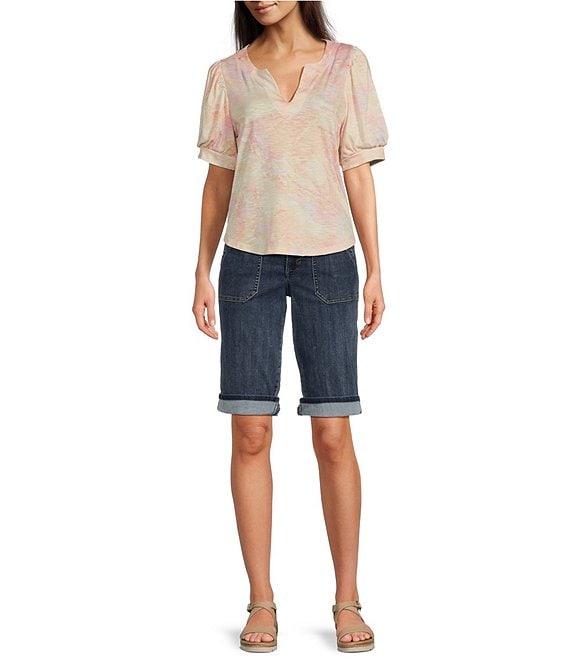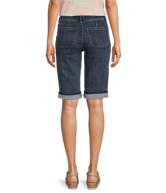 From Democracy, these shorts feature: Belt loops Front patch pockets Knee length shorts Rolled-cuff hem Button and zipper fly closure Approx. 15" uncuffed; 13" cuffed Cotton/repreve® recycled polyester/spandex Machine wash/tumble dry Imported.